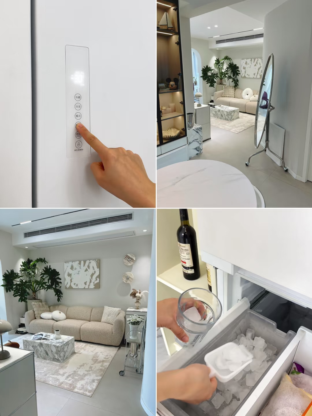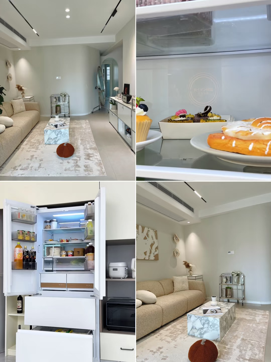》容量:高容全嵌:60cm超薄机身,520L大容量---不留卫生死角、符合精装房预留空间,放化妆品面膜护肤品、或者其他需要的东西,和冰箱大环境做隔离