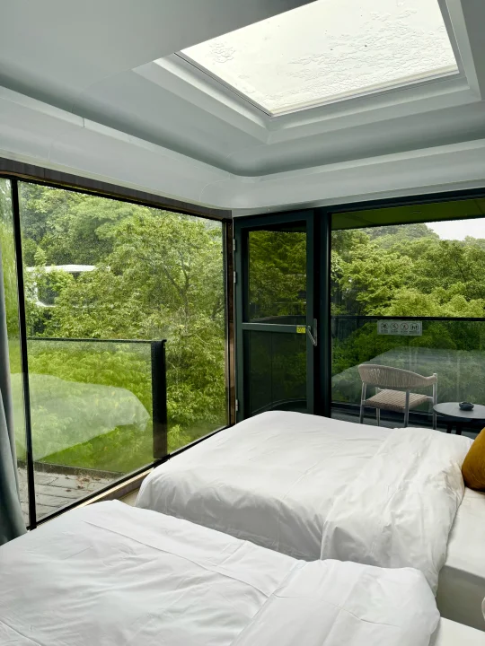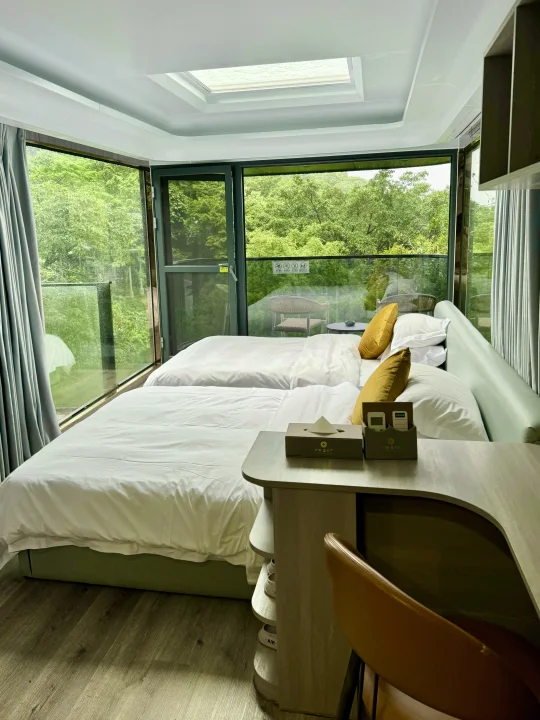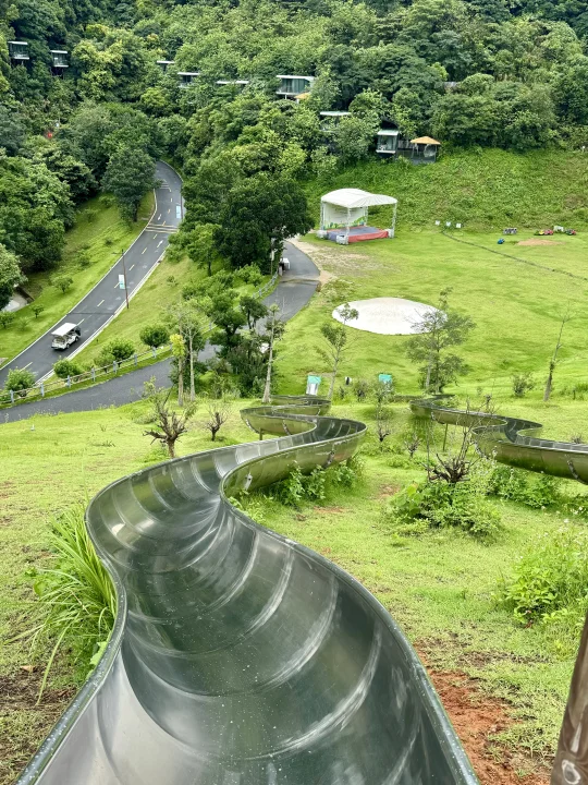 广州出发自驾1小时,去从化山里 远离城市喧嚣,带娃去山谷里尽情玩耍吸氧~ 到的时候刚好赶上下雨 谁知雨里雾气环绕山林更美了! 雨后放晴的天空更蓝 感叹风景如此之美 房子都隐藏在森林里 好像世外桃园一般 让人瞬间感受到了舒适的度假感 雨后走出户外乐园玩耍 孩子笑声的充满了整个山谷 好爱大自然的自由感 早餐和晚餐没有踩雷 这可能是我比较喜欢的一个遛娃地了 💡这次民宿是朋友推荐在去哪儿旅行app定的,小朋友玩到不想走~