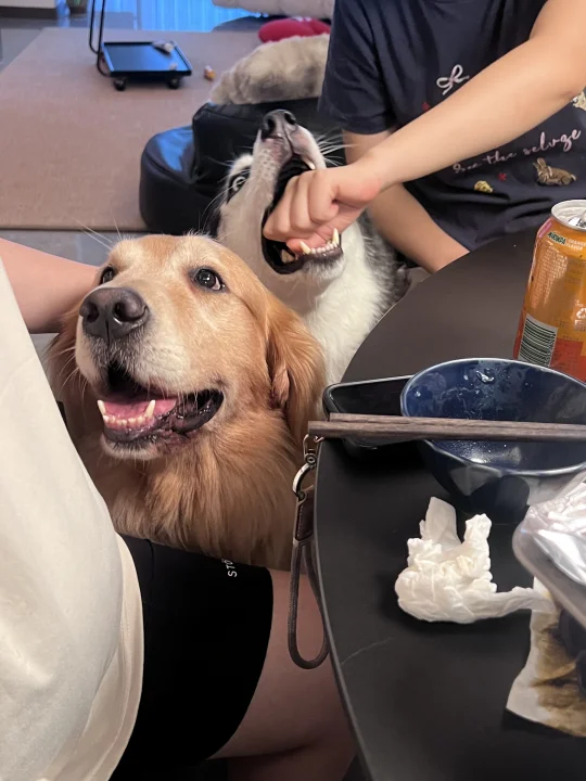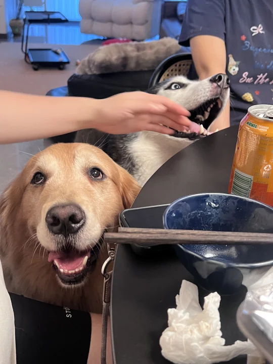 金毛 小狗和朋友 这个世界上怎么能没有狗狗 眼神中透漏着清澈的愚蠢 在一起开心就好 哈士奇