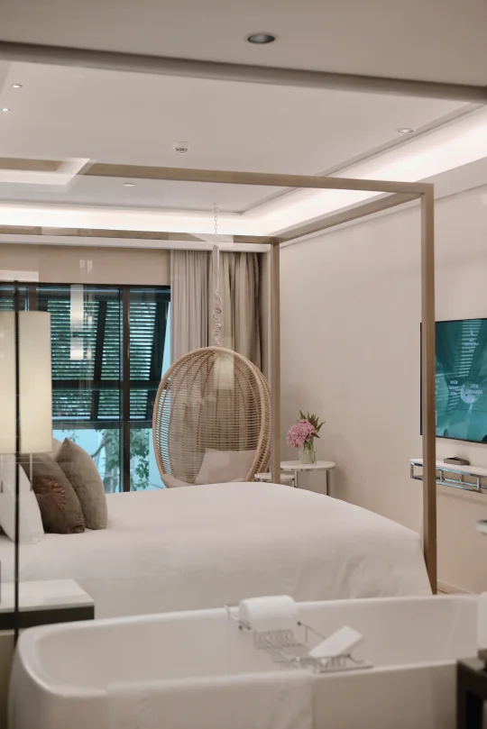 𝖵𝗂𝗏𝗂𝖺𝗇 𝗂𝗇 𝗧𝗵𝗮𝗶𝗹𝗮𝗻𝗱|𝗦𝗶𝗮𝗺 𝗞𝗲𝗺𝗽𝗶𝗻𝘀𝗸𝗶🌴🤎🩶 𝖠𝖻𝗈𝗎𝗍 𝖧𝗈𝗍𝖾𝗅 闹中取静的欧式雅致秘境🚪坐落于暹罗商圈核心,步行可达𝗦𝗶𝗮𝗺 𝗣𝗮𝗿𝗮𝗴𝗼𝗻购物中心 酒店设计融合欧式古典与泰式风情🎞️水晶吊灯映着木质雕花,每一步都像在逛“可住的艺术空间” 𝖠𝖻𝗈𝗎𝗍 𝖱𝗈𝗈𝗆 浅色调软装配丝绒沙发⏳复式小屋打开门就是泳池🏊♀️也是曼谷唯1⃣️的泳池联通房🩵度假松弛度拉满~ 浴室的大理石台面摆着高端洗护🧴泡澡时闻着花香,旅途的疲惫都化了