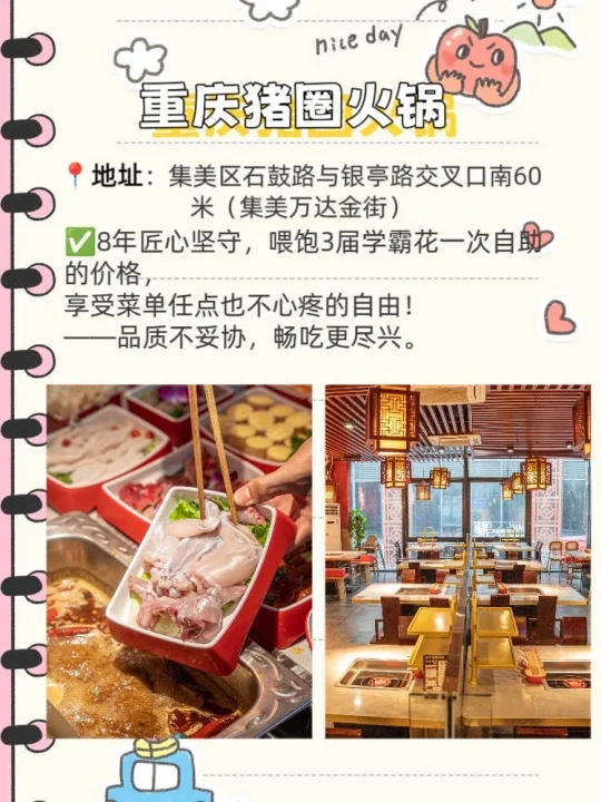 卖点:8年匠心坚守,喂饱3届学霸花一次自助的价格,享受菜单任点也不心疼的自由!——品质不妥协,畅吃更尽兴。