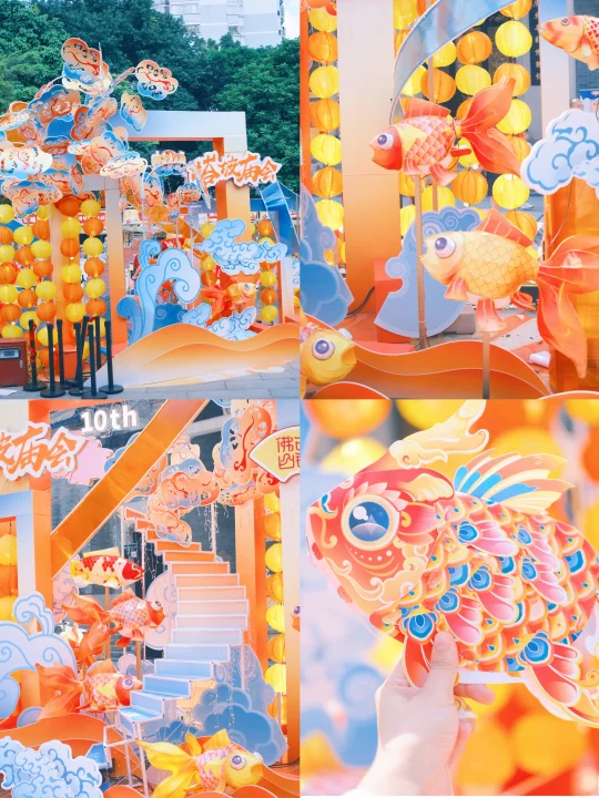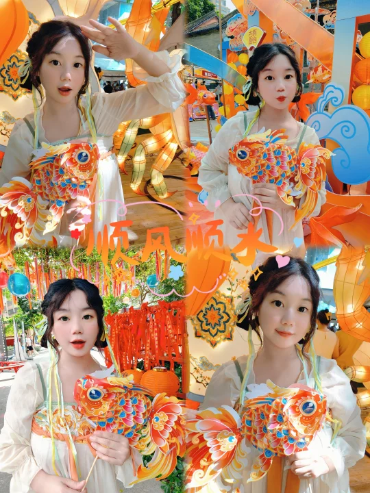 每晚20:00还有鱼灯巡游哦,流光溢彩的鱼灯从塔坡公园巡游至兆祥公园,寓意着“年年有余”,拍照简直绝绝子📸!