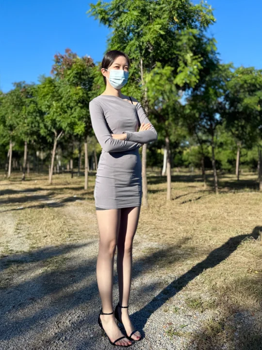 姐姐这身材和气质绝了!淡紫修身裙完美勾勒曲线,胸前饱满、腰肢纤细、臀部圆润,每一