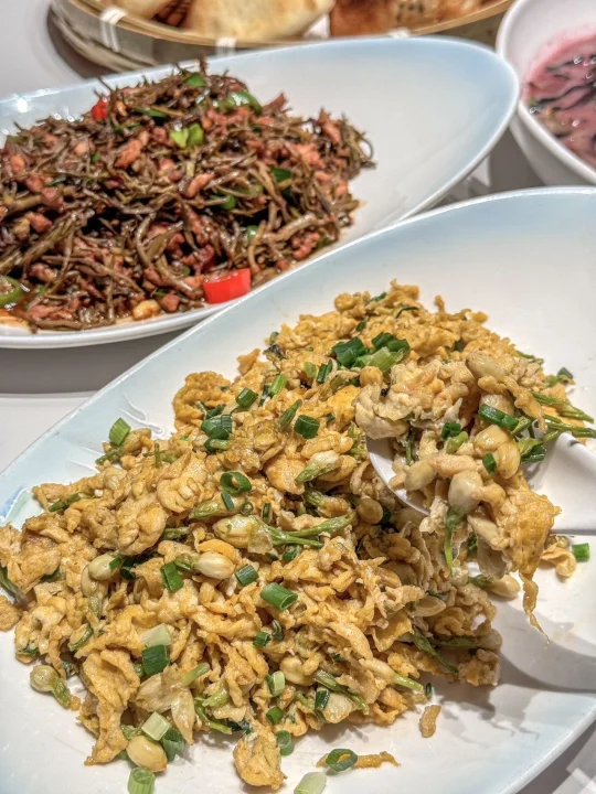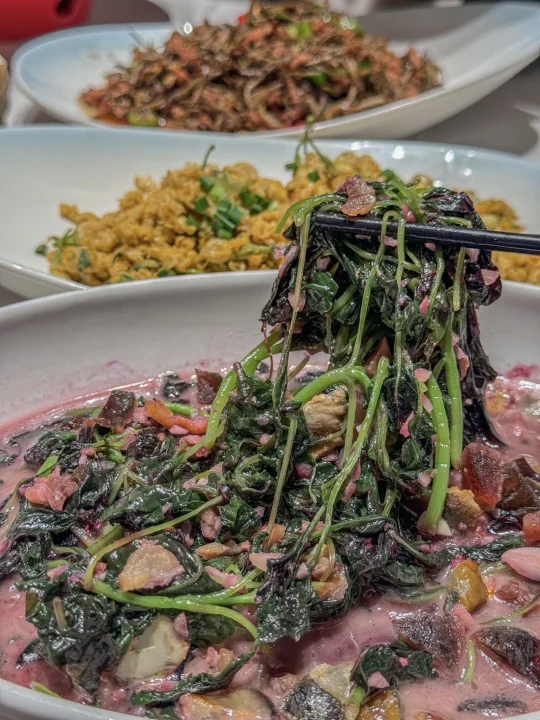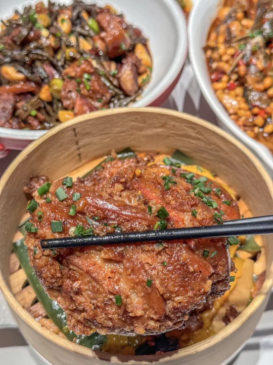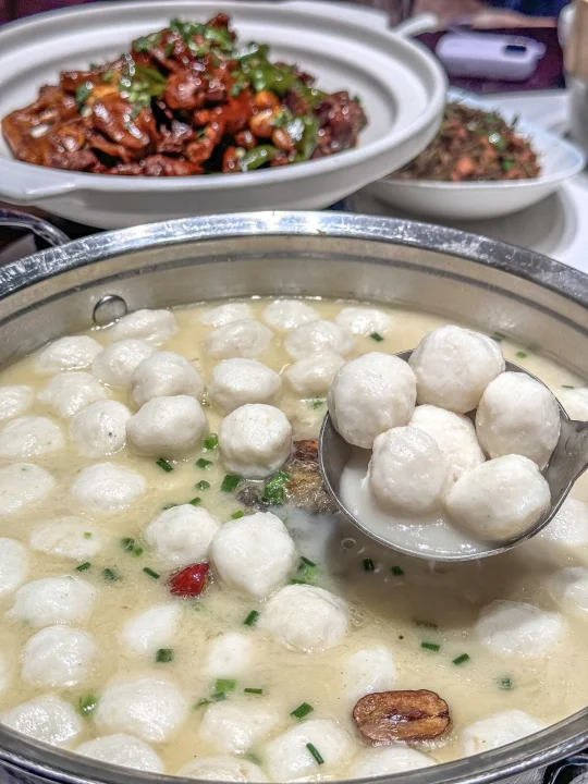 和三两好友今天找对地方了 吃的安心健康,满满一大桌太幸福了 汤逊湖鱼丸 特色手打鱼丸汤,鱼丸白嫩如雪 汤底用鱼骨熬制,富含优质蛋白 滑嫩无刺适合老人小孩,搭配小葱更香!! 五里界粉蒸肉 精选猪五花,传统湖北粉蒸肉 底层垫着清甜南瓜解腻 茉莉花炒土鸡蛋 茉莉花与散养土鸡蛋同炒 花香清新不苦涩,鸡蛋嫩滑带金黄焦边 明档菜品区,蔬菜每日来自品牌自有农庄新鲜采摘 带露水上桌!!这家吃的放心呀