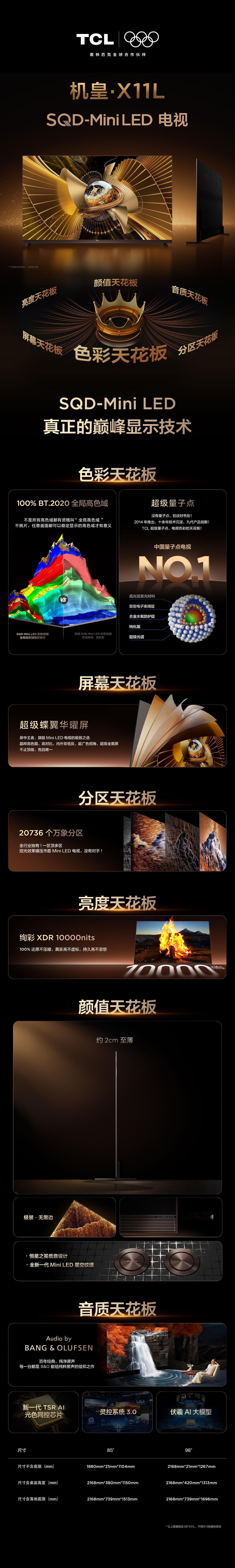 X11L SQD-Mini LED电视登场 击破行业十年色域僵局 一图全览,见证全球色彩巅峰