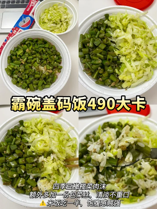 四季豆橄榄菜肉沫,多加了一份包菜丝,家常菜吃完非常顶饱,一份490大卡