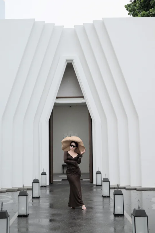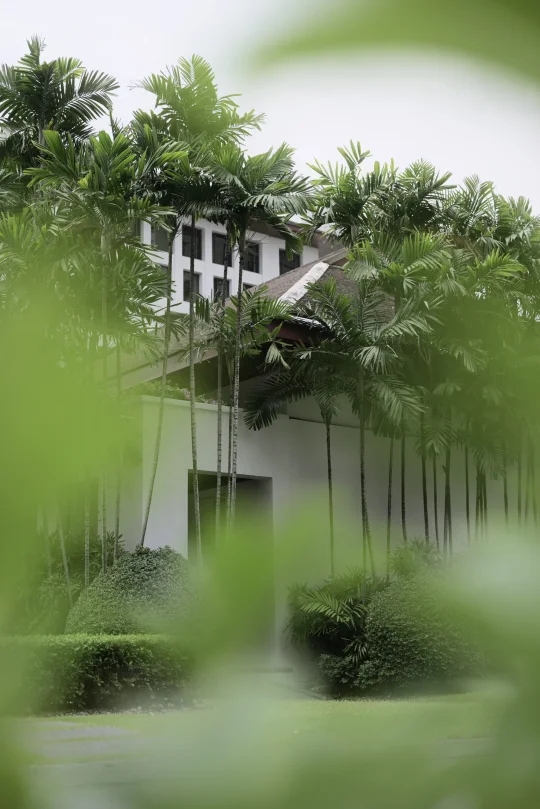 踏入酒店瞬间被吸引🪵白墙、绿植、水池倒影交织出极致简约的对称美学