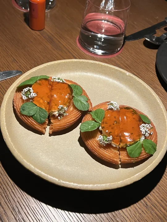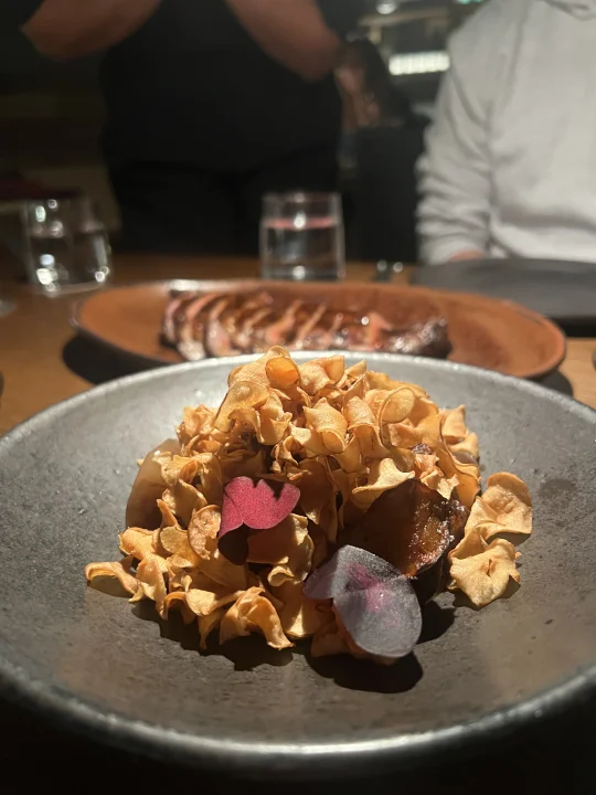 这个感觉不太行,点的medium rare,但吃起来真的有点难咬,肉边沿处的脂肪也没有烤焦香,总之作为全场最贵的菜 在我心中它不OK。