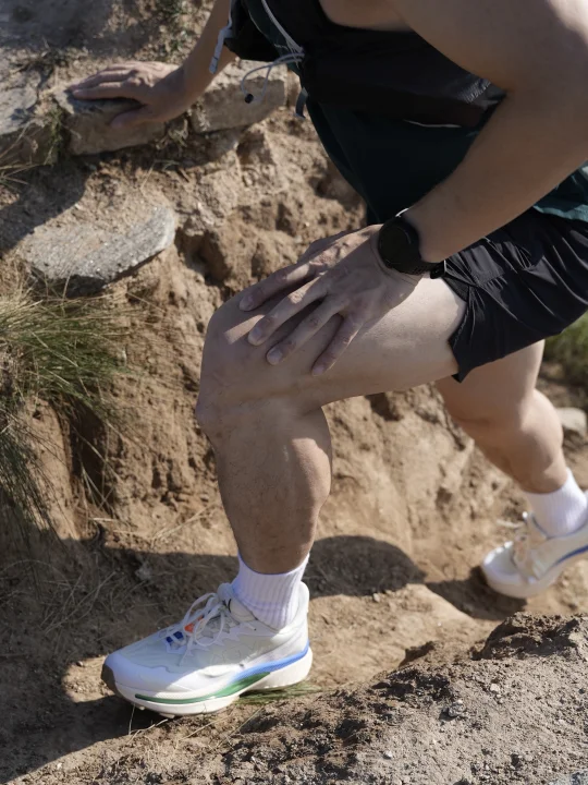 爬坡道时(坡度40°+!),乱石堆下多次一脚踏空,在脚踝猛拧的瞬间,中足PROBAR LOC抗扭片“咔哒”锁死!外腰TPU稳稳托住!超强稳定性,哪怕是越野小白也能轻松驾驭。