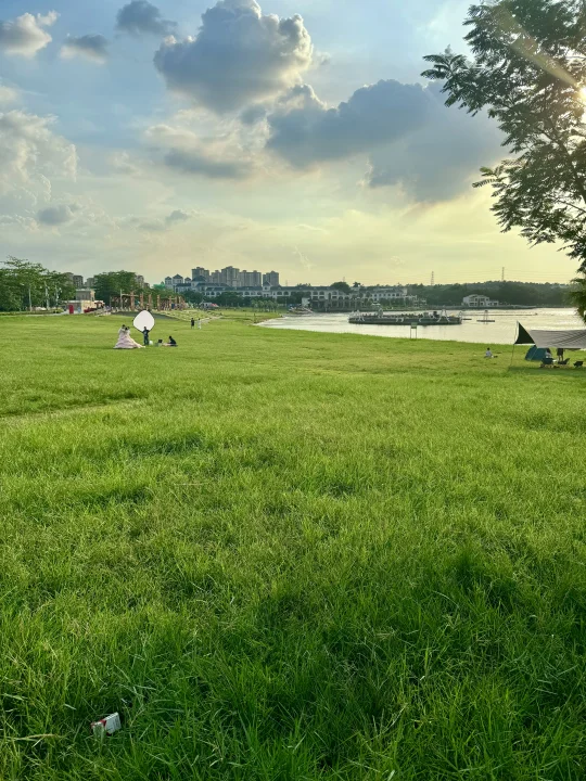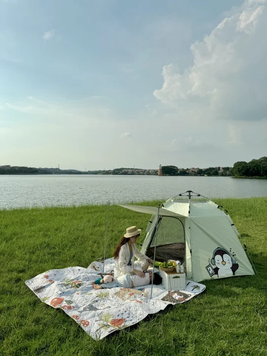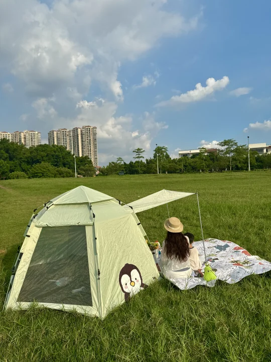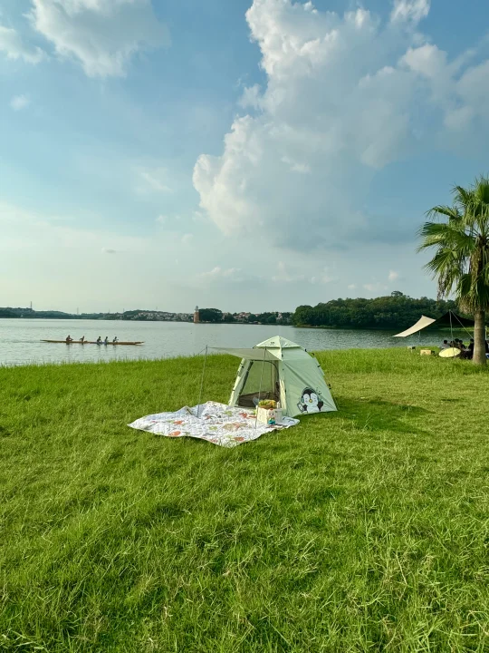不用出远门,就在佛山也拥有自己的大片草地露营 就在佛山南海仙湖度假区 佛山市区开车20分钟可达 这几天有了点入秋的感觉,天气越来越凉快~ 正是带娃户外露营的好季节 🏕游玩攻略: 🔷这次露营我准备了一顶抱抱鹅帐篷,终于把原来的丑帐篷淘汰了,美景就应该配上好看的帐篷,这次露营真的随手一拍就出片,发朋友圈也不会羞耻症了! 不需要什么搭建技巧,一拎一按撑开就好了 真的很适合经常带娃的人,小企鹅🐧的图案,超可爱~ 270°全景落地窗,拉开是通透观景台,躺着就能欣赏美景,拉上可以秒变小家,还有小天窗可以看到天空 🔷带小朋来可以带一些水枪玩水、足球、风筝等 🔷准备一些零食水果、也可以点外卖到草地 🔷户外草地露营,需注意防蚊虫 👏这里可以烧烤、明火、天幕帐篷、足球、放风筝、钓鱼,拍照打卡 👏可以环湖骑行,游览湖景~ 👏草地很大一片,周末来这里也不会人挤人 👏停车就到走到草地就1分钟!还有🚻洗手间!🅿️停车也免费! 这样的场地遛娃真的很省心省