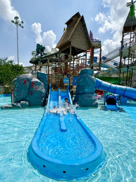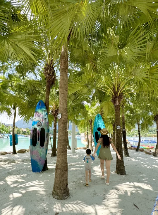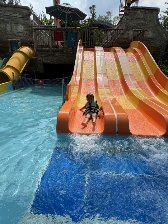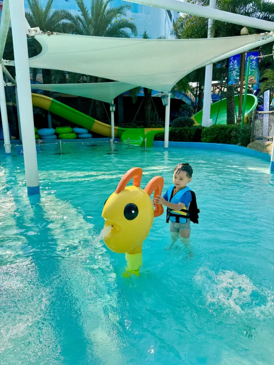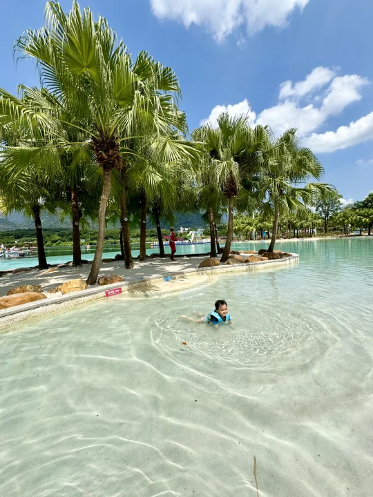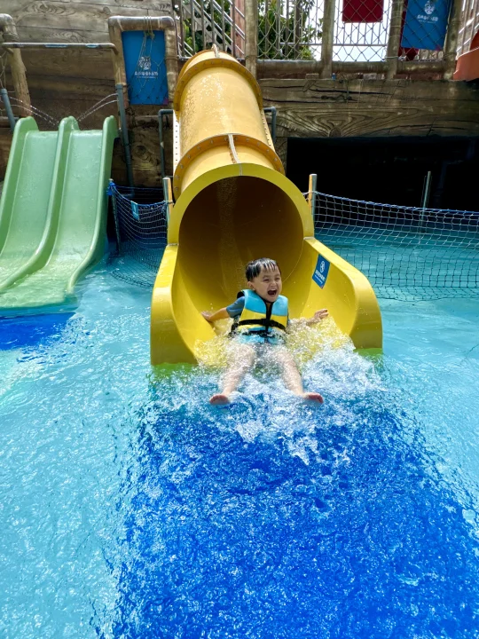这应该是广州遛娃水上乐园的天花板了~ 趁着夏天的尾巴当然要带娃去玩水啦 刚带了3岁的娃去了广州森林海嬉水乐园 真的太太太太好玩了,项目超多,体验感拉满 椰林白沙滩、巨型大喇叭、大水寨、水上过山车、室内水乐园、森林温泉等 每个年龄段的游玩项目都有,很适合一家大小出游 我们9月份错峰玩游玩,真的太爽了,不用人挤人,游玩项目不用排队,来享受包场的快乐! 给大家整理一份玩水攻略,请收好~ 👏怎么玩 ✅丛林大水寨 大水桶泼水超解压!还有跷跷板、滑道等等! ✅古海王国 室内玩水乐园,不怕晒,很适合小宝宝玩,有好多滑道,还有造浪池 ✅椰林白沙滩 三亚同款椰林白沙滩,水质清澈见底,拍照绝了,小朋友挖沙超快乐 ✅大喇叭 肾上腺素狂飙的项目 ,适合胆大的玩!真的太解压啦! ✅水上过山车 一下穿越半个乐园,好玩!感受极速的快乐 ✅抓鱼摸虾 小朋友超喜欢的,体验捉鱼的快乐,捉到可以带回家~ ✅森林温泉 玩累了随时可以去温泉区泡泡放松一下 🎆海上花火大会 ⚠️国庆期间10.1-10.8每晚7:30 还有绝美的海上花火大会!!美到哭~ 🍲吃:园区里有餐厅,中西餐都有,我们去了从林餐厅,价格比较良心 🏨住:晚上不想赶行程,可以入住园区,我们选了宫崎骏漫画树屋,还带有滑梯,温泉泡池在房间也可以遛娃~ 📣实用小Tips: 🔷带上手机防水袋、拖鞋、泳衣、浴巾、防晒霜 🔷3岁以下的建议可以带个推车,小朋友玩累随时可以推着走 🔷不用带泳圈也可以,园区免费提供救生衣,每个区都有,很方便 🔷园区里有饮料自助机,也有提供多个免费温开水点,可以带个保温杯去接水 🔷每天很多表演节目,提请关注好时间
