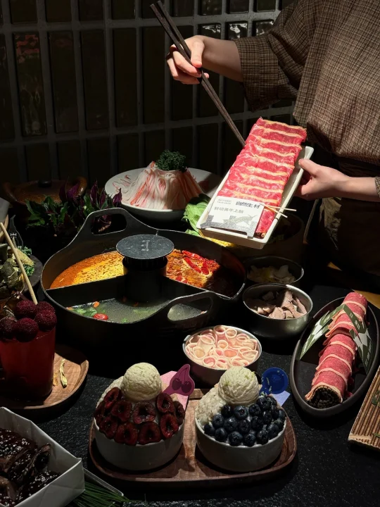 不愧是深圳火锅界的实力选手🔥 反复打卡的宝藏火锅🥘 - 牛肉新鲜得能掐出水💦菌菇拼盘鲜到不行 每次吃都忍不住疯狂夸:也太好吃了吧!! 颜值高到舍不得吃!真的好治愈~ 🍓酸酸草莓冰|🫐酸甜蓝莓冰|🍒车厘子冰 每种口味果料都超多,冰体细腻入口即化 一口辣锅一口冰,冰火两重天的快乐绝了! 解辣又清爽,一顿火锅我能炫两份冰~