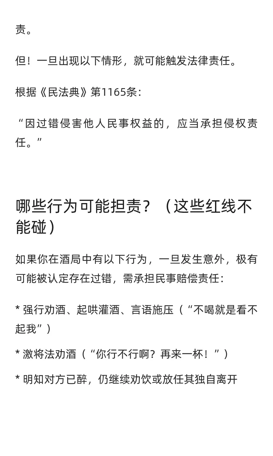 如果你在酒局中有以下行为,一旦发生意外,极有可能被认定存在过错,需承担民事赔偿责任: