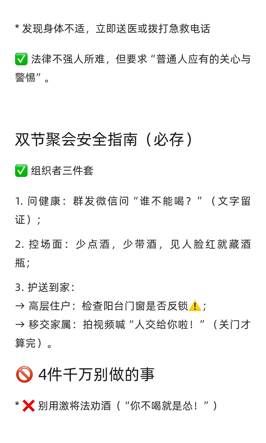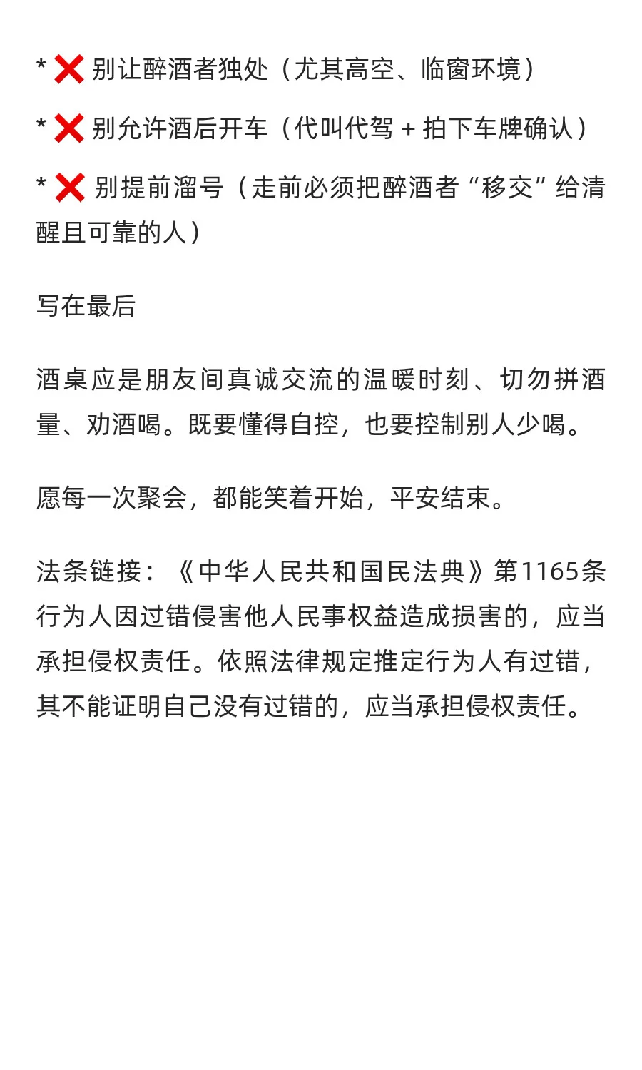 ❌ 别提前溜号(走前必须把醉酒者“移交”给清醒且可靠的人)