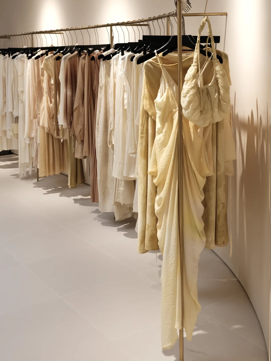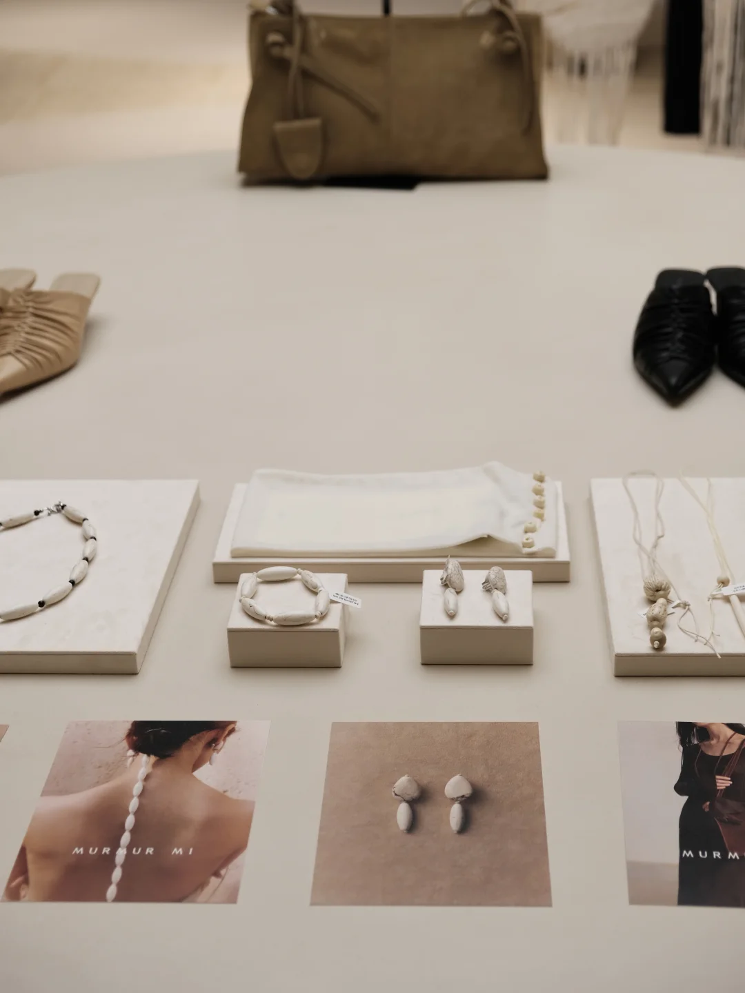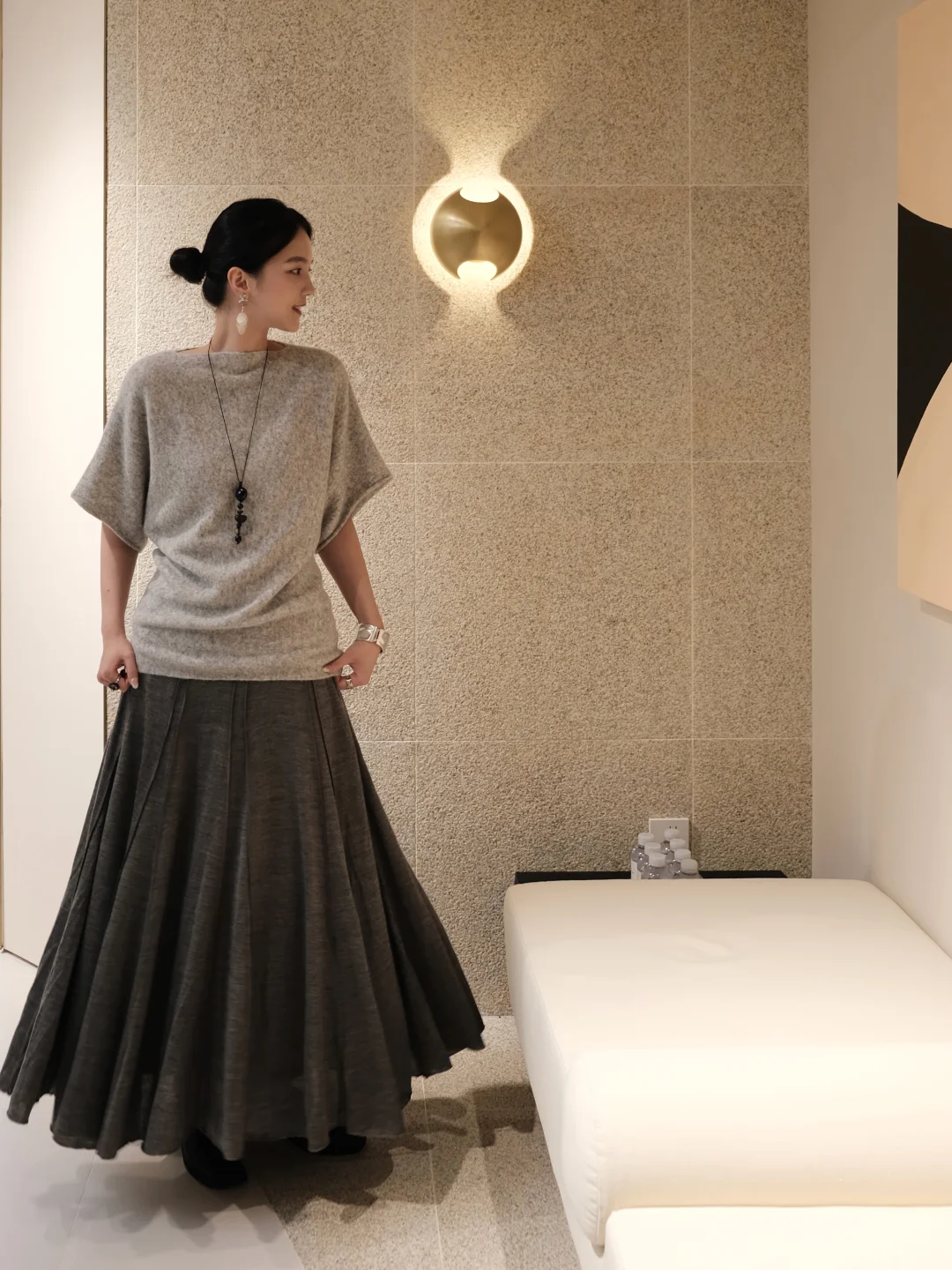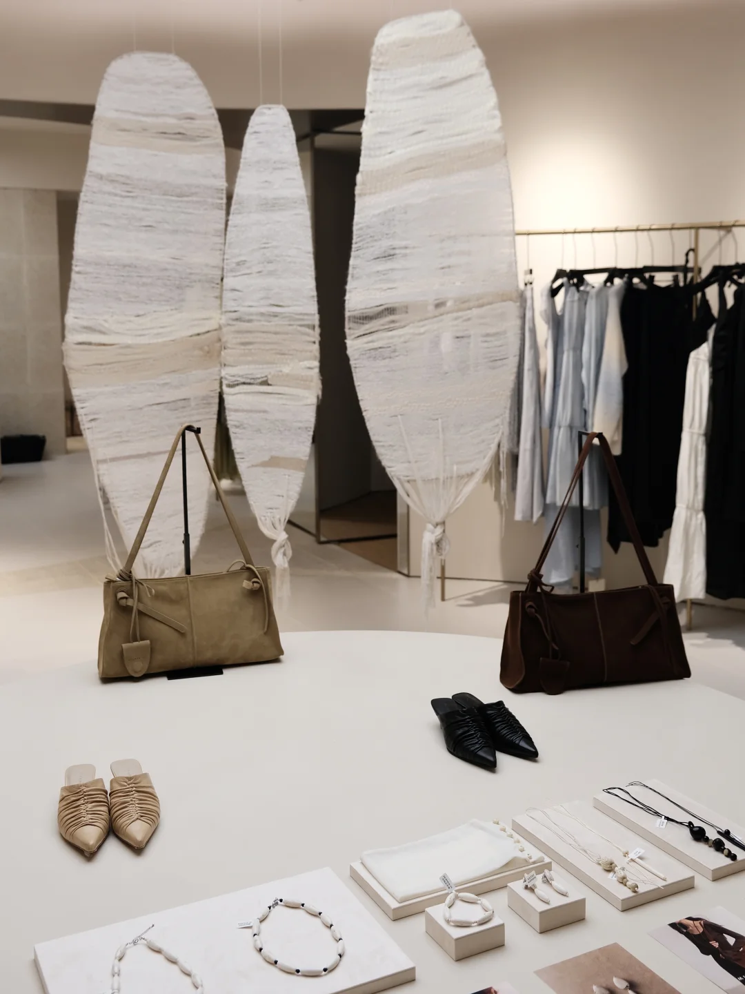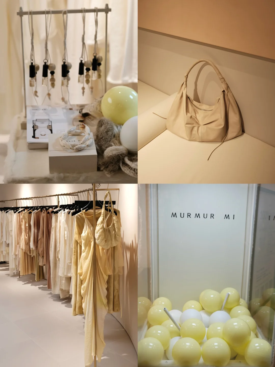 喜欢很久的品牌终于来深圳了🫶 整个空间以纤维艺术织构光影 一进店被静谧高级的氛围包裹 垂悬的马海毛装置如呼吸般轻盈 仿佛走进Lenore Tawney的编织梦境 触摸材质的柔软 感受风与光的轨迹🕊️ 搭配一身灰调针织裙 低饱和色调与松弛剪裁 在织物香息里 遇见murmurmi与秋天 🍂 -