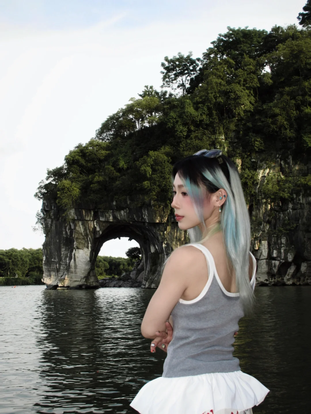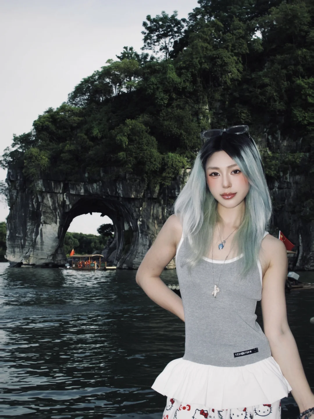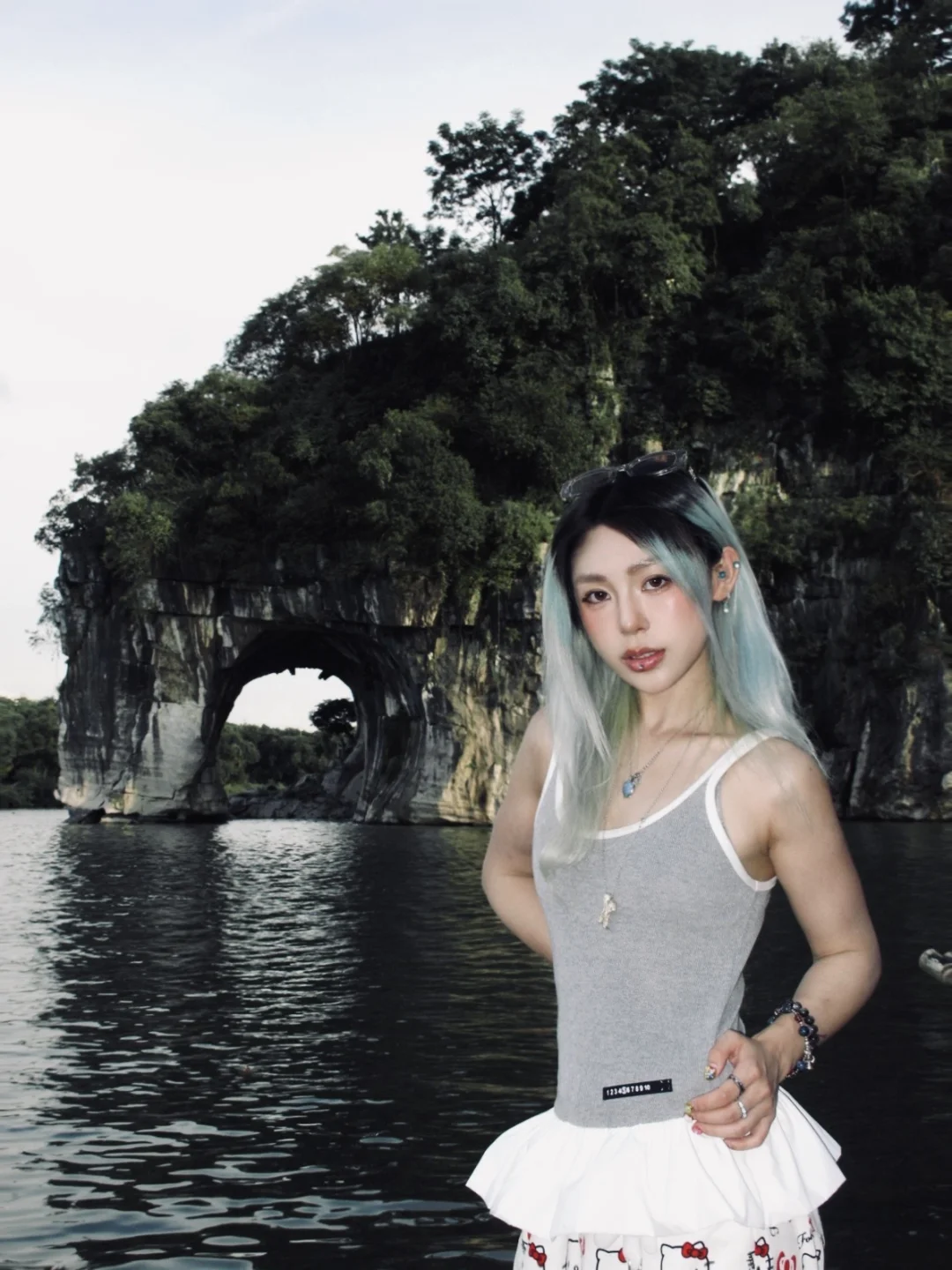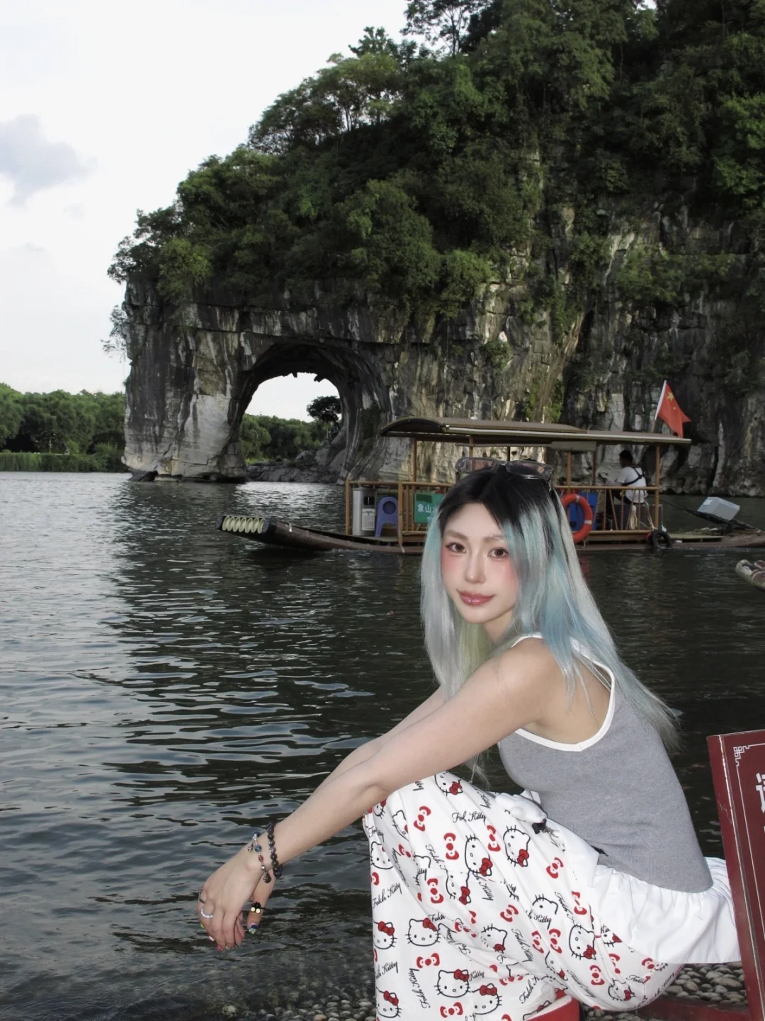 谁懂啊‼️ 站在象鼻山脚下那一刻 真的被大自然的鬼斧神工震撼到😭 漓江的水清到反光 山像巨象低头饮水 岩洞倒影圆月太太太梦幻🌙 仿佛走进水墨画里了!! - 偷偷说一句: 下午四点后的光线最温柔 ☀️ 穿浅色裙子拍剪影绝美💃 人多的话可以走到最右边上竹筏的位置‼️那里人很少 姐妹们信我!! 桂林山水真的能治愈一切⛰️