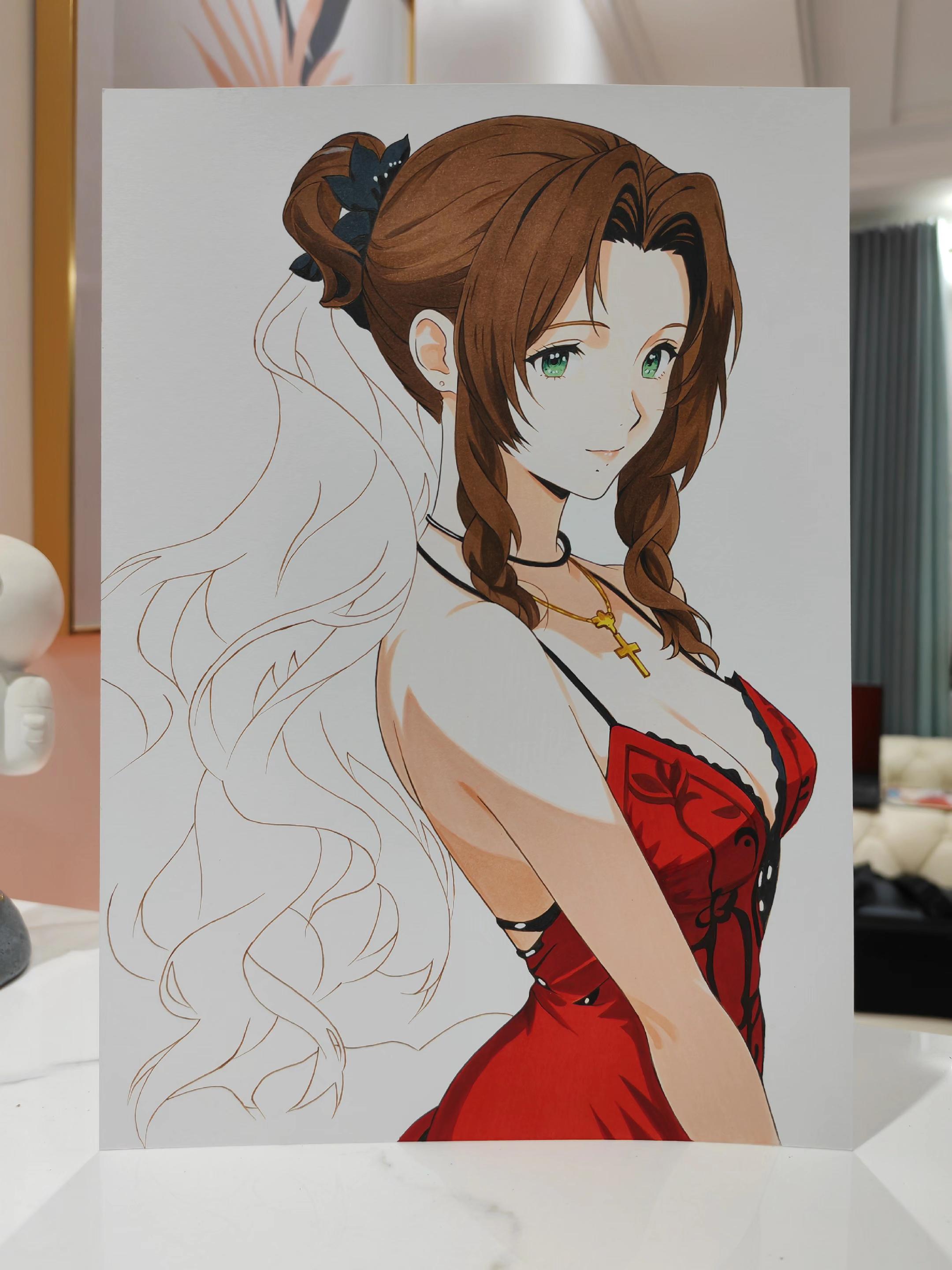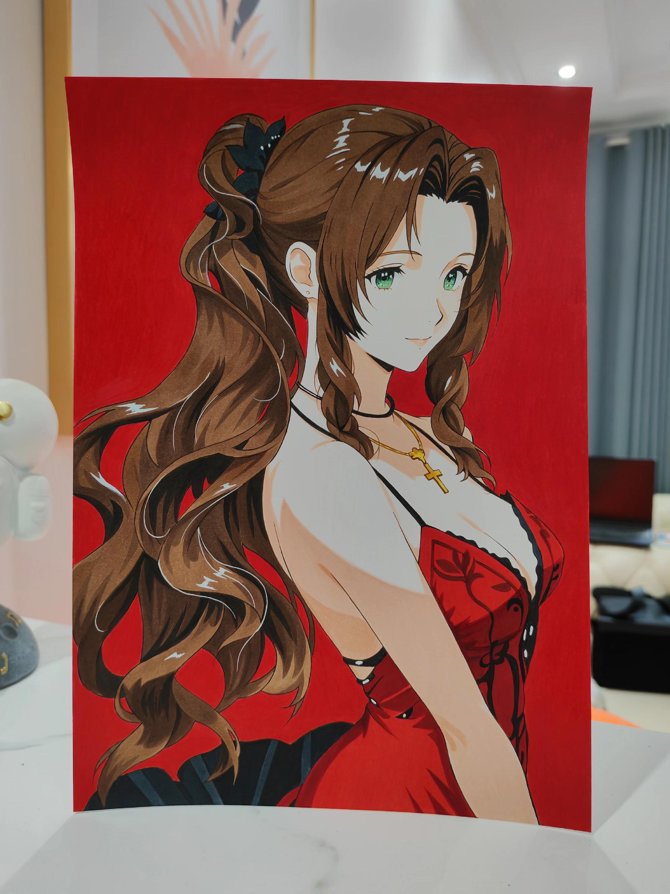 这张画的红色背景,画的我手杆痛。最终幻想爱丽丝手绘过程图