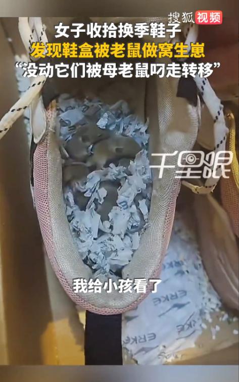 “解释不清了!”9月17日,江苏徐州,一女子见天气转凉,就给孩子找换季的鞋穿,打开鞋盒后,却发现里面有5只小老鼠,两只鞋子都被咬烂了!女子没舍得弄死小老鼠,继续放在鞋盒里,等到第二天再看时,已经被鼠妈妈转移了。网友:过街老鼠,人人喊打! 最近天气转凉,任女士准备给孩子找一双秋季鞋子穿,她从堆满旧衣物的柜子里翻出一个鞋盒,心想终于找到了好久没穿的那双鞋。 可当她打开鞋盒的那一瞬间,眼前的景象让她愣住了——鞋子里满是老鼠的破坏痕迹,鞋垫、鞋底都被咬烂了,最让她吃惊的是,鞋子里竟然有五只小老鼠,毫无防备地窝在里面。 这一幕让任女士忍不住心生怜悯,她想到鼠妈妈费劲心力抚养这些小鼠,心中竟没忍心赶走它们,她决定,反正鞋子也不能穿了,就让小老鼠暂时待在盒子里,等到第二天再做决定。 她甚至把这些小老鼠拿给孩子看,告诉他:“这是老鼠宝宝,要小心,它们可不是朋友。” 不过第二天早上,任女士再去看时,却发现鞋盒里空空如也,连一只小老鼠的影子也没见到,显然鼠妈妈在夜里悄悄转移了小鼠,找了个更安全的地方栖身,这一切仿佛一场偶然的插曲,却也引发了网友们的热议。 有网友看到这个故事后,纷纷表示,这种善心令人感动,但也有不少人指出,老鼠虽可爱,却不适合被放任,它们本能地带来了一些不良后果——不仅会偷吃家里的食物,还可能传播疾病,严重影响生活环境。 更有网友调侃道:“过街老鼠,人人喊打!”这种轻松幽默的评论背后,折射出大家对老鼠的不满。 任女士的善举,虽然出发点是善良的,但很多人认为,过度的容忍只会带来更大的麻烦,事实上老鼠作为一种野生动物,通常会在人类的栖息地寻找食物和避难所。 它们对家庭生活环境的破坏力远不止嘴巴上的啃咬,还可能通过带来病菌和害虫影响家庭健康,特别是长时间放任,老鼠的繁殖能力惊人,可能导致更大的问题。 对很多家长来说,换季时给孩子找衣物、鞋子是日常的一个小事,但这次事件却暴露了一个常被忽视的家庭卫生问题——旧物存放不当可能带来各种意外。 每年换季时,衣物、鞋子和其他用品往往会被放在柜子里长时间不动,久而久之,容易吸引老鼠、蟑螂等不速之客,如果不仔细检查,就会面临像任女士一样的尴尬局面。 从某种角度来说,这件事也给大家敲响了警钟,在换季的时节,除了换上秋冬衣物外,家里的储物间和衣柜也该定期清理,防止小动物闯入,保持卫生,做好物品的清洁和整理,既能避免不必要的麻烦,也能保障家人的健康安全。 通过这件事情,大家不仅看到了一个母亲的善良,也意识到卫生管理在生活中的重要性,希望大家在未来的换季时,既能给予自己和家人关爱,也能确保生活环境的安全与卫生。 对于这件事情,大家有什么看法? 信息来源:《女子找鞋发现鞋盒被老鼠做窝生崽》搜狐千里眼