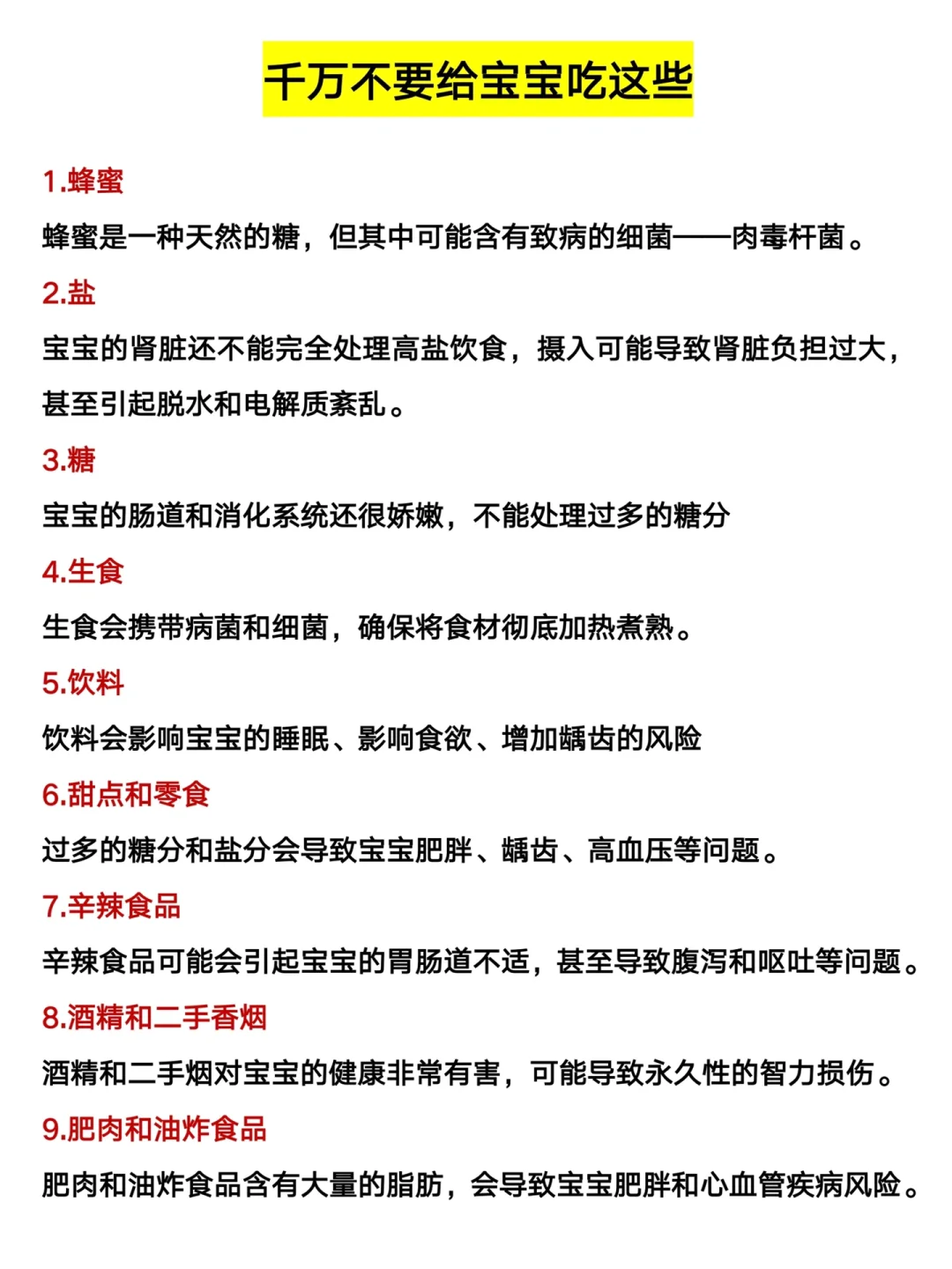 当宝宝渐渐长大,进入6个月以上的阶段,添加辅食成为了必须面对的挑战[害羞R]。对于大部分新手妈妈们来说,这个阶段很容易感到困惑和不知所措,哪些食物是不能给宝宝食用?我为大家整理了一些宝宝初次添加辅食和零食的注意事项⚠️。希望这些建议能够帮助新手爸妈们,让您更加自信地面对这个挑战,陪伴宝宝健康成长[飞吻R]