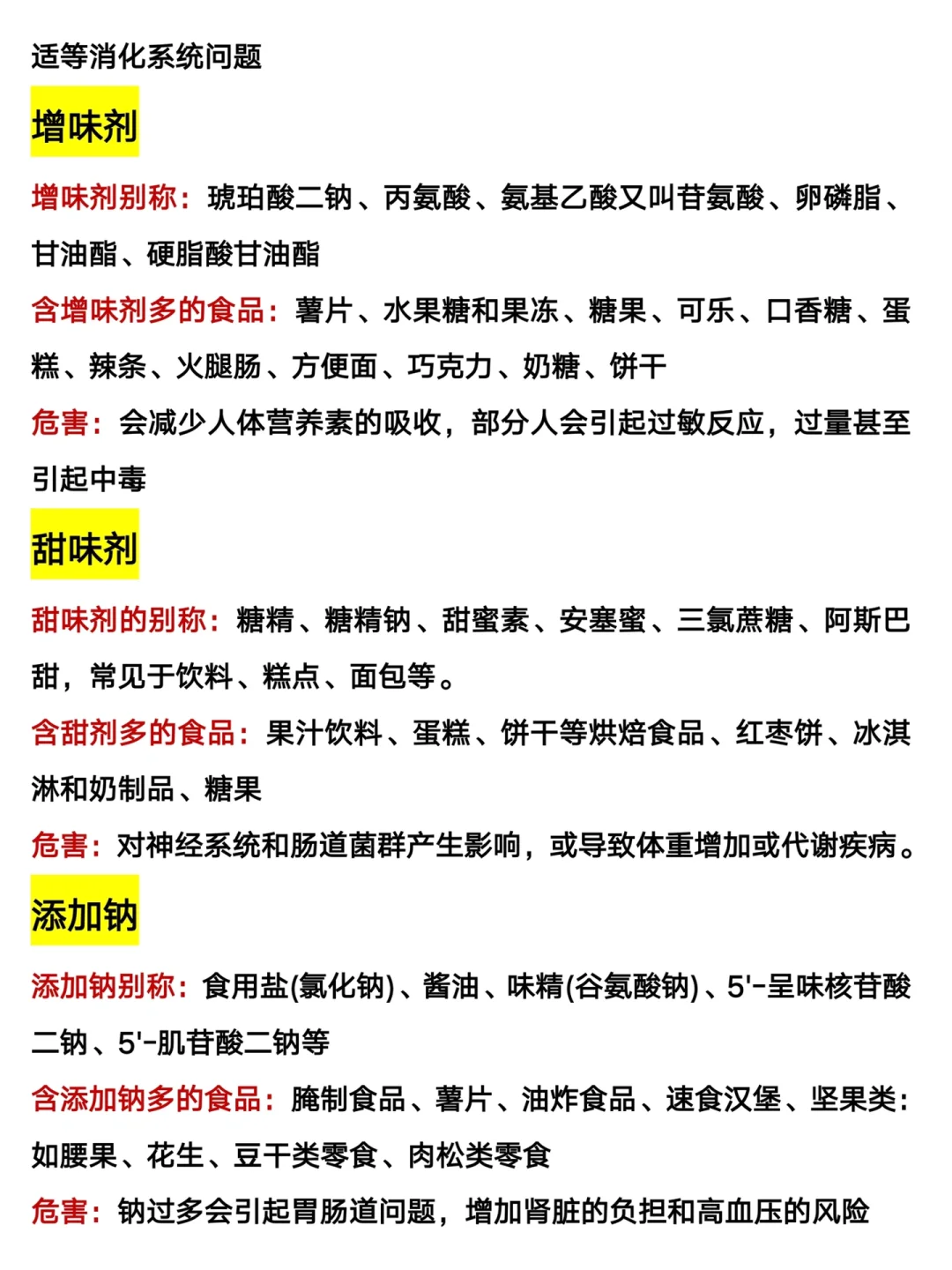 2️⃣成分表:选择配料表中没有添加剂、少盐、少糖、少油的产品。