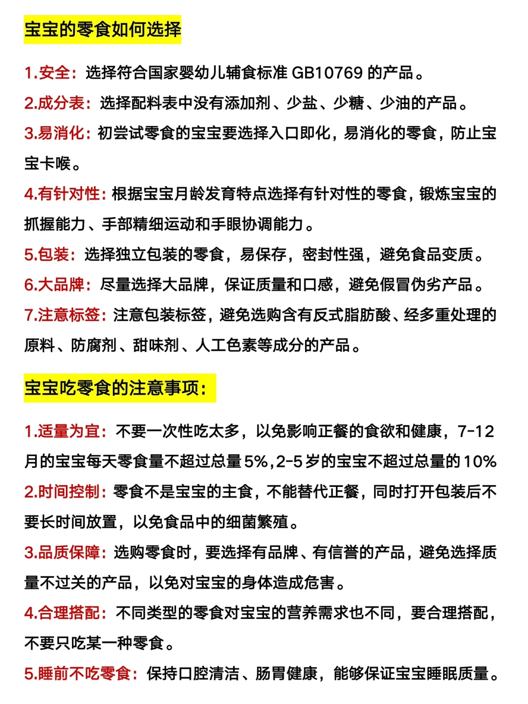 1️⃣安全:选择符合国家婴幼儿辅食标准GB10769的产品