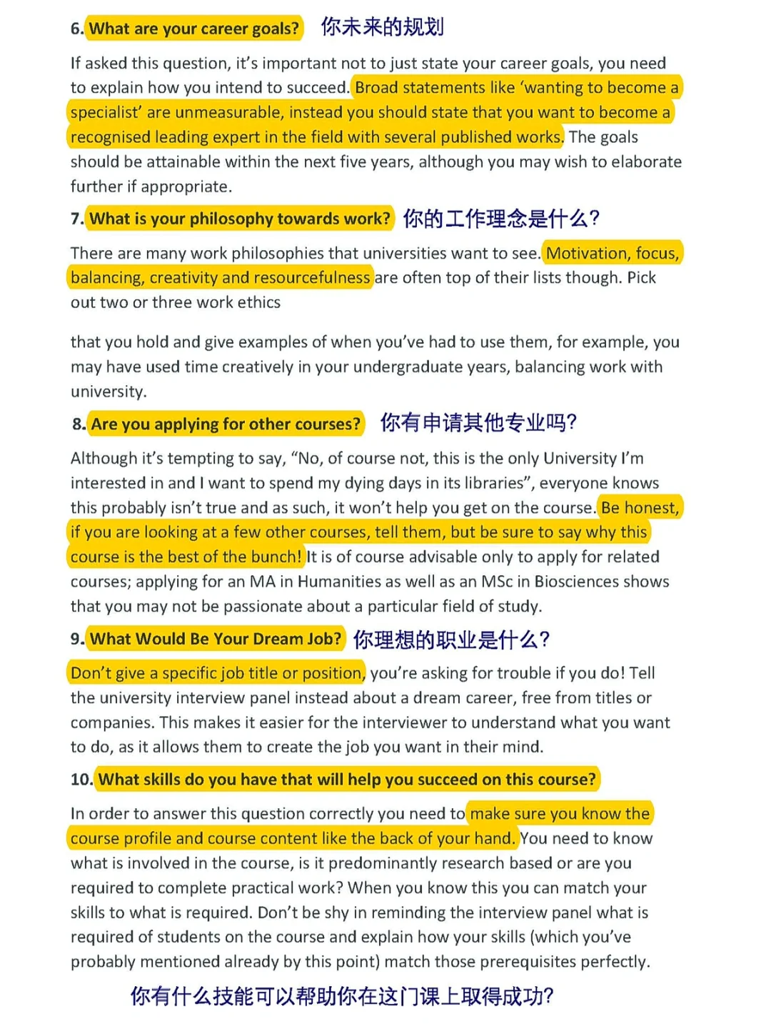 🌟研究生留学面试常见问题(详情请看图) 🌟重点看标记的语句(回答tips都在里面) 🌟陆续更新