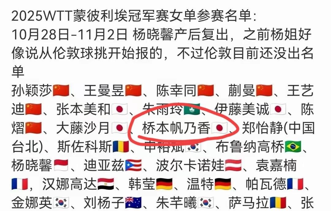 孙颖莎真是铁人!WTT北京大满贯还没有打,法国的蒙彼利埃冠军赛的名单就已经出了!