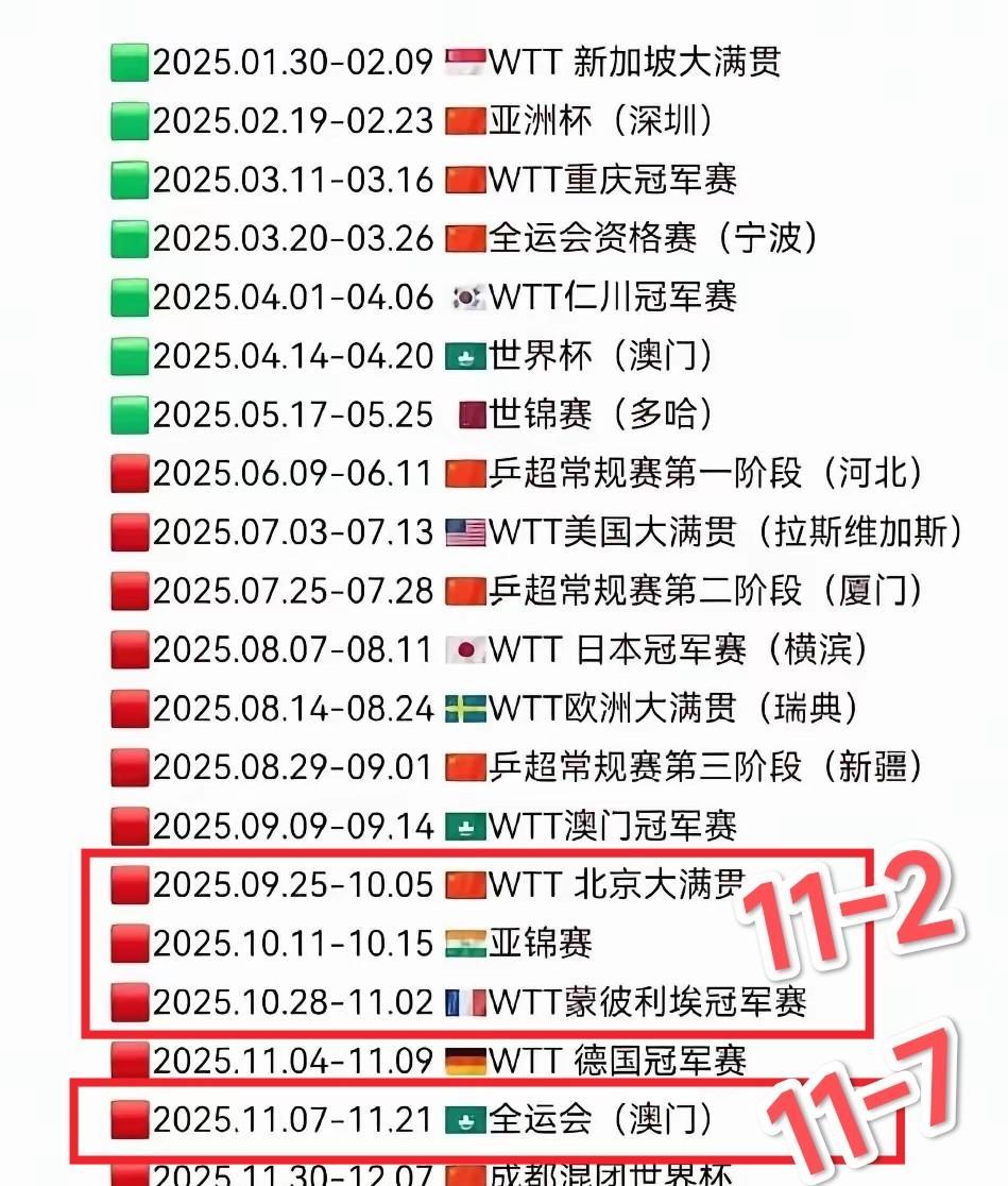 孙颖莎真是铁人!WTT北京大满贯还没有打,法国的蒙彼利埃冠军赛的名单就已经出了! 蒙彼利埃冠军赛的结束时间与全运会只相差五天,按莎莎现在的断层积分和排名,真的可以休息一站!!因为冠军赛是1000分,她再怎么换,最低积分都是1000分了,完全可以让其他主力带队赚积分呀?!难不成是因为有乔本帆乃香吗??[what][what] 到现在亚锦赛的名单还没有出,不知道亚锦赛国乒主力要不要上!如果亚锦赛也要连着上的话,真是轴承的节奏!! 11月和12月连着5场比赛!!真的人都颠!![我想静静][我想静静] 还是那一句,希望莎莎在赛场上健康完赛!![加油][加油]