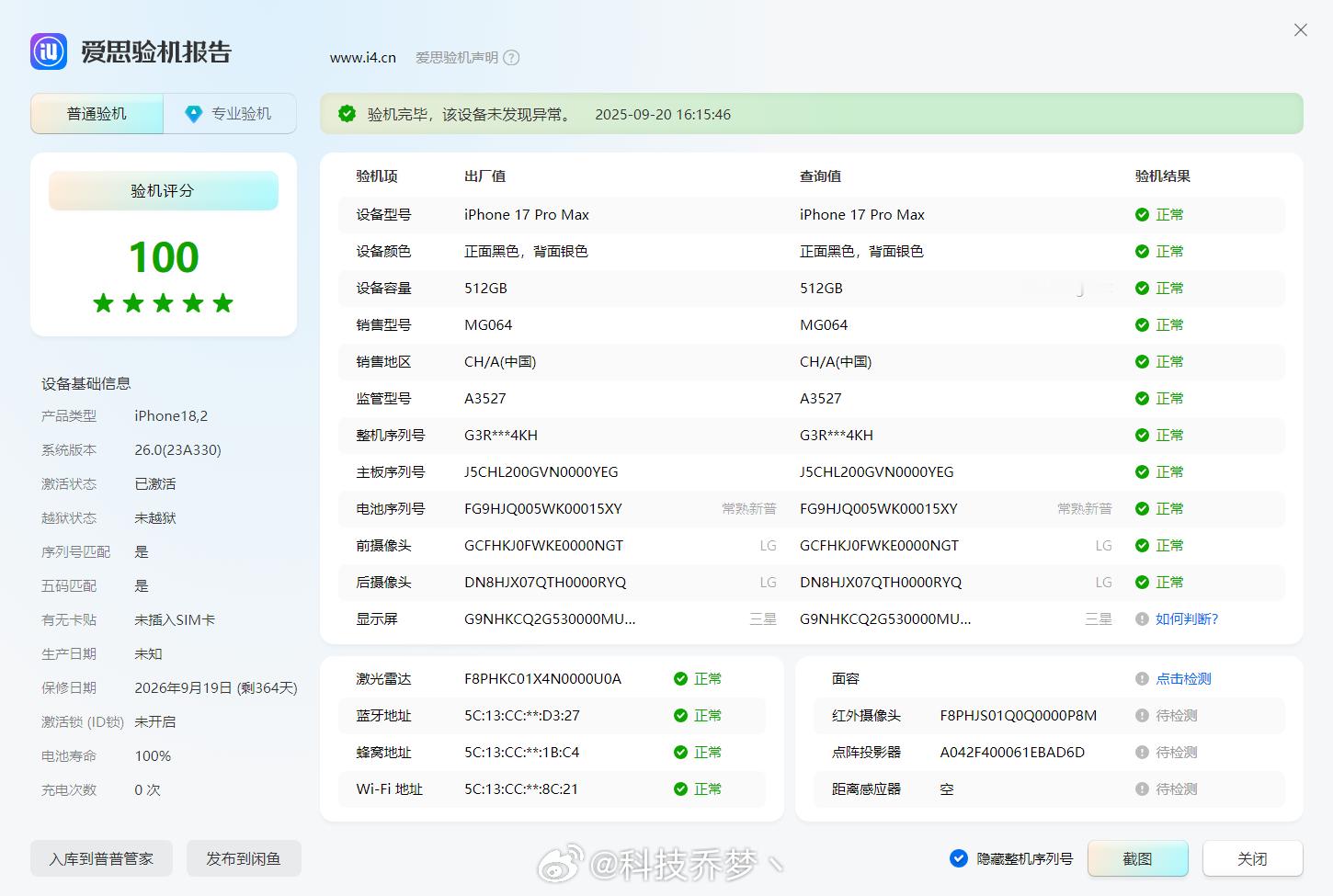 iPhone15 Pro Max丢智羽回收了,再见了15PM,希望你喜欢这2年来属于你的戏份(两年962次循环,电池寿命96%,够爱惜了)。接下来的是iPhone17 Pro Max 512G银色[舔屏][舔屏][舔屏]