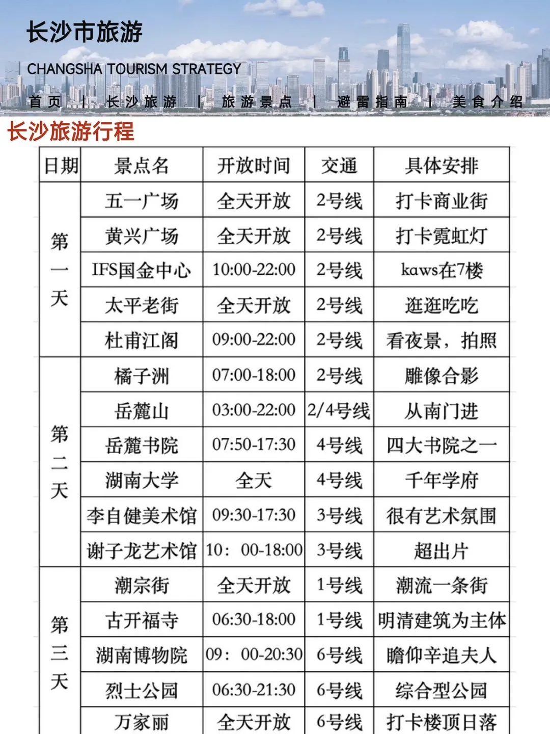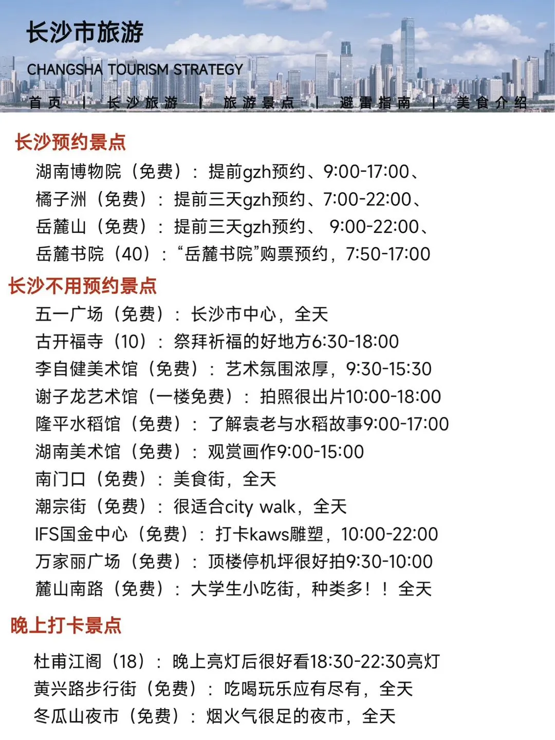 12月-3月准备来长沙游玩的姐妹,一份新的长沙旅游攻略已送达,需要的姐妹码住!来长沙前一定做好规划!提前把需要预约的景点都给约上,不然来了进不去很麻烦的!