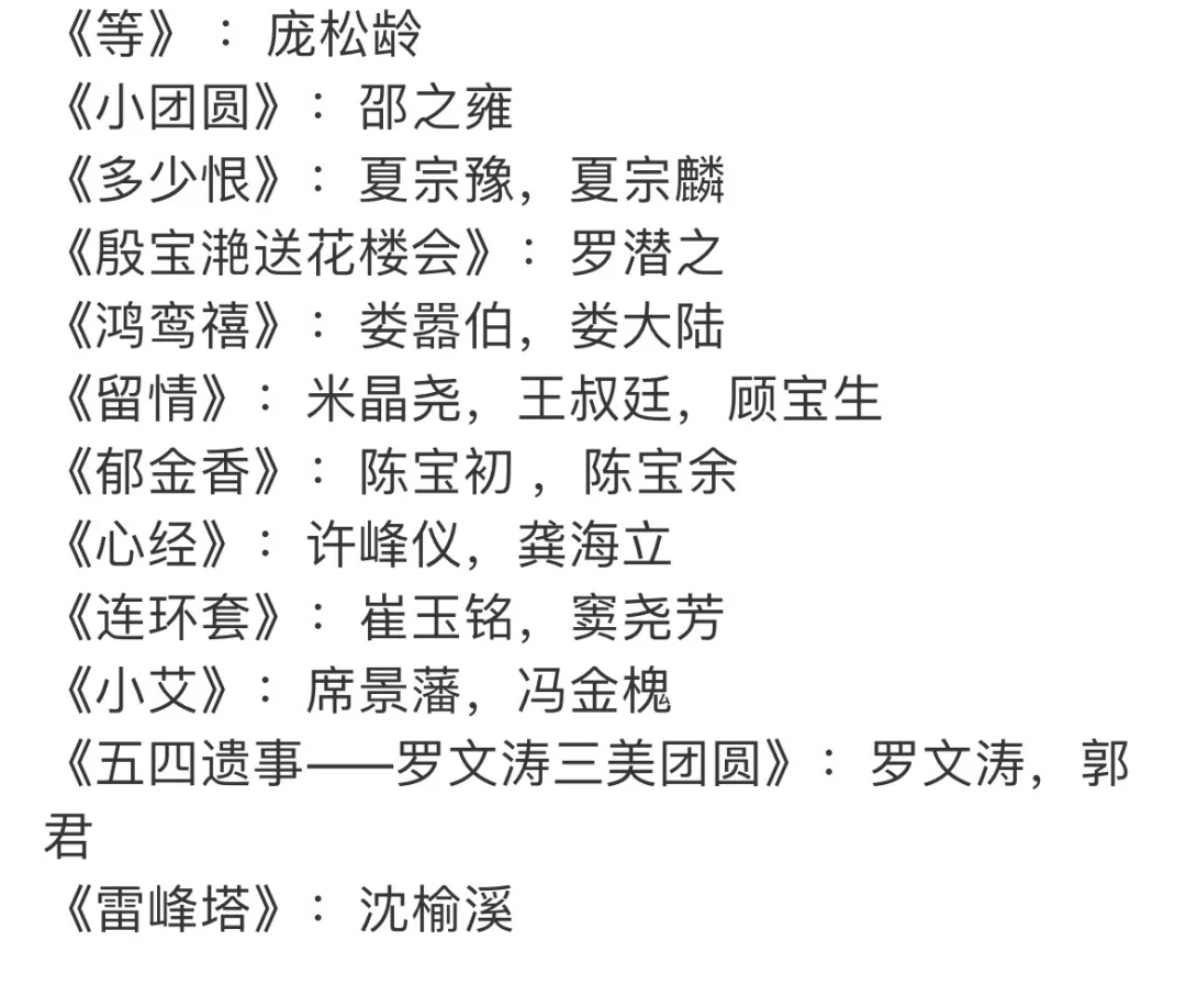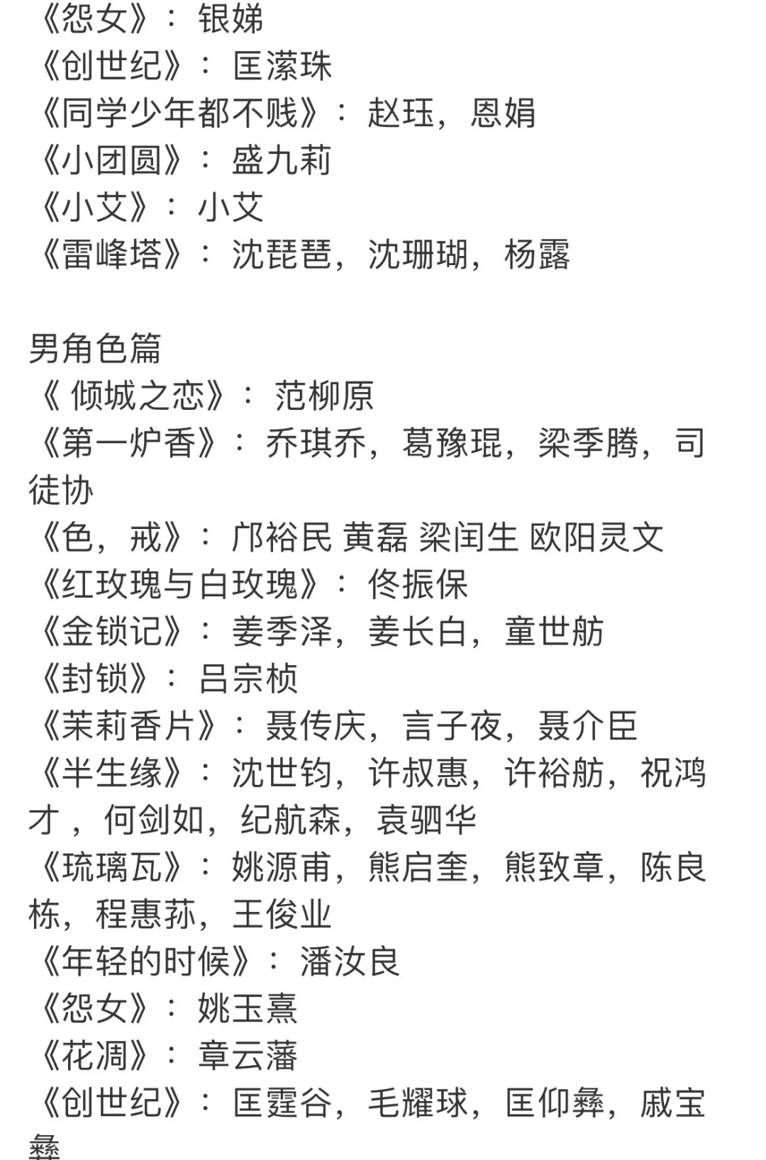 《半生缘》:顾曼桢,顾曼璐 ,石翠芝,窦文娴,陶琬珠