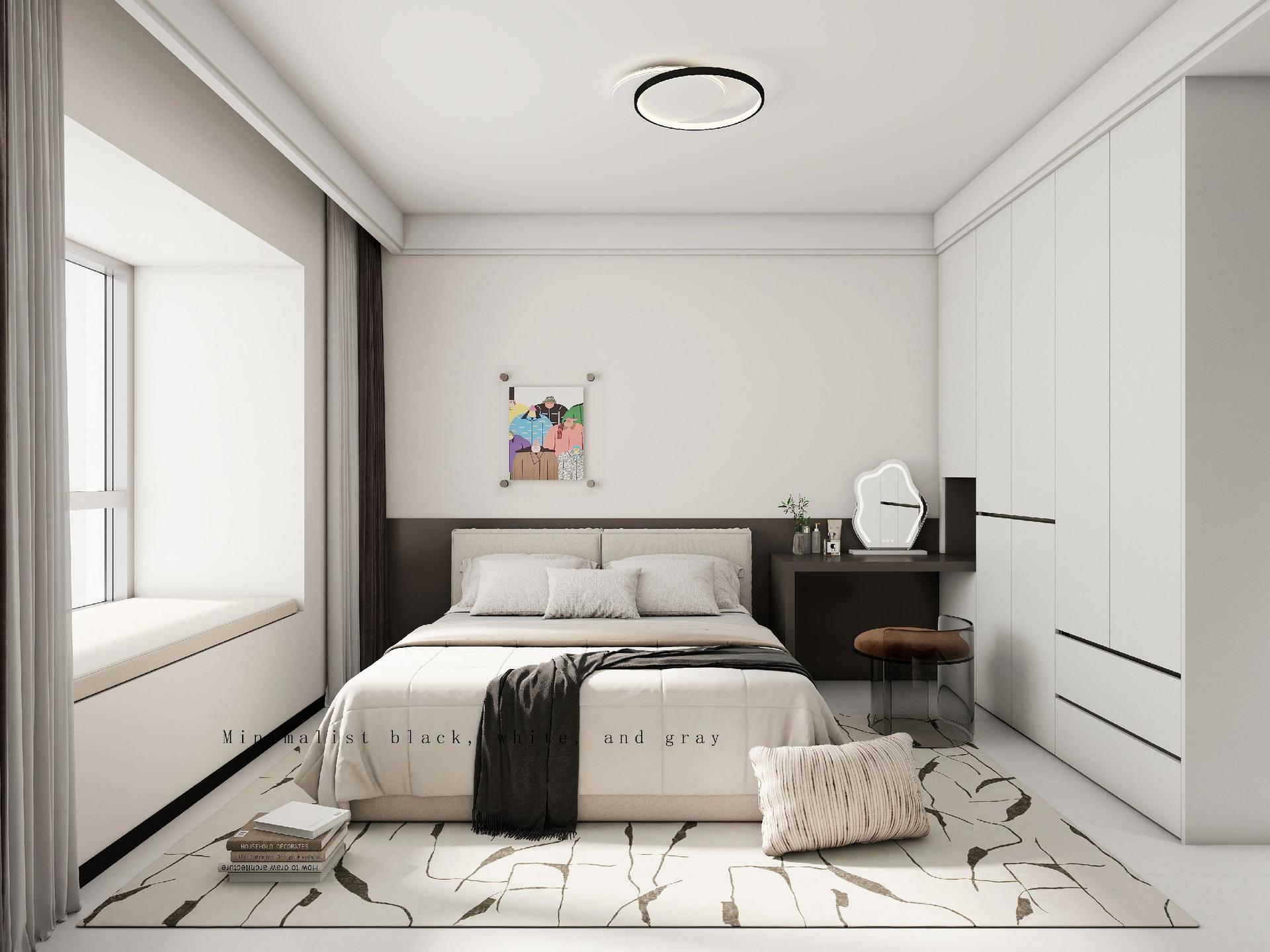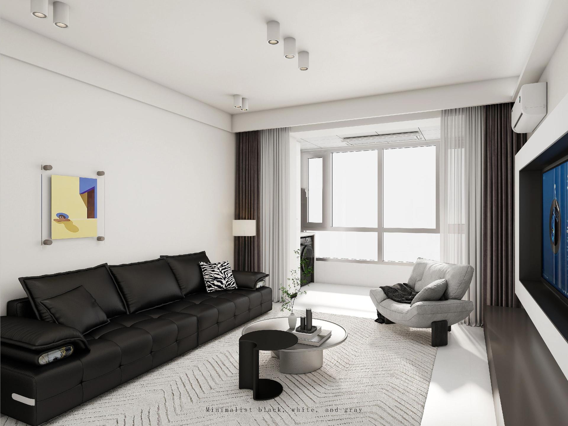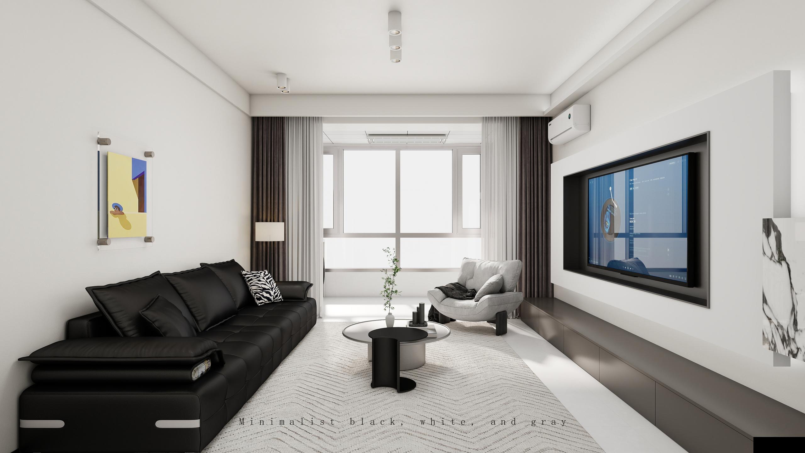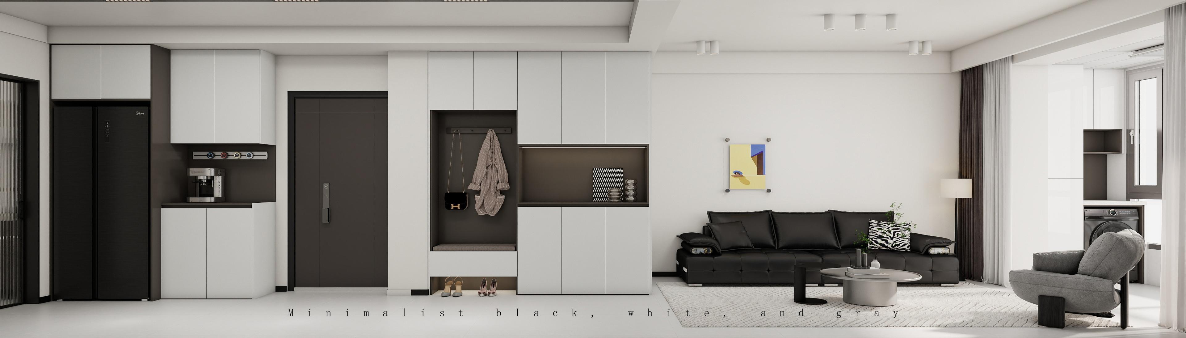 室内设计 装修设计案例 效果图表现 Minimalist black, white, and gray 黑白灰三室设计案例!
