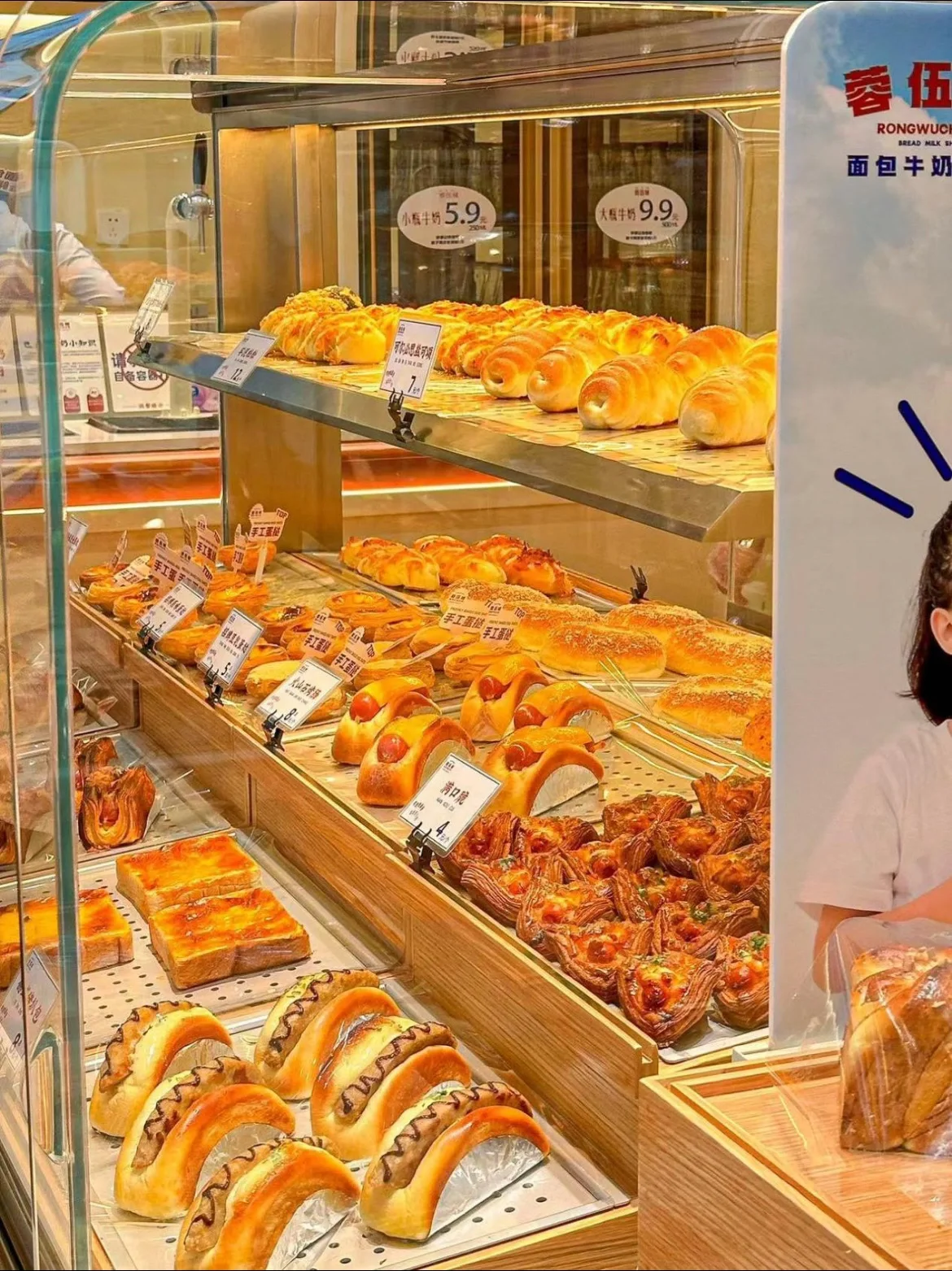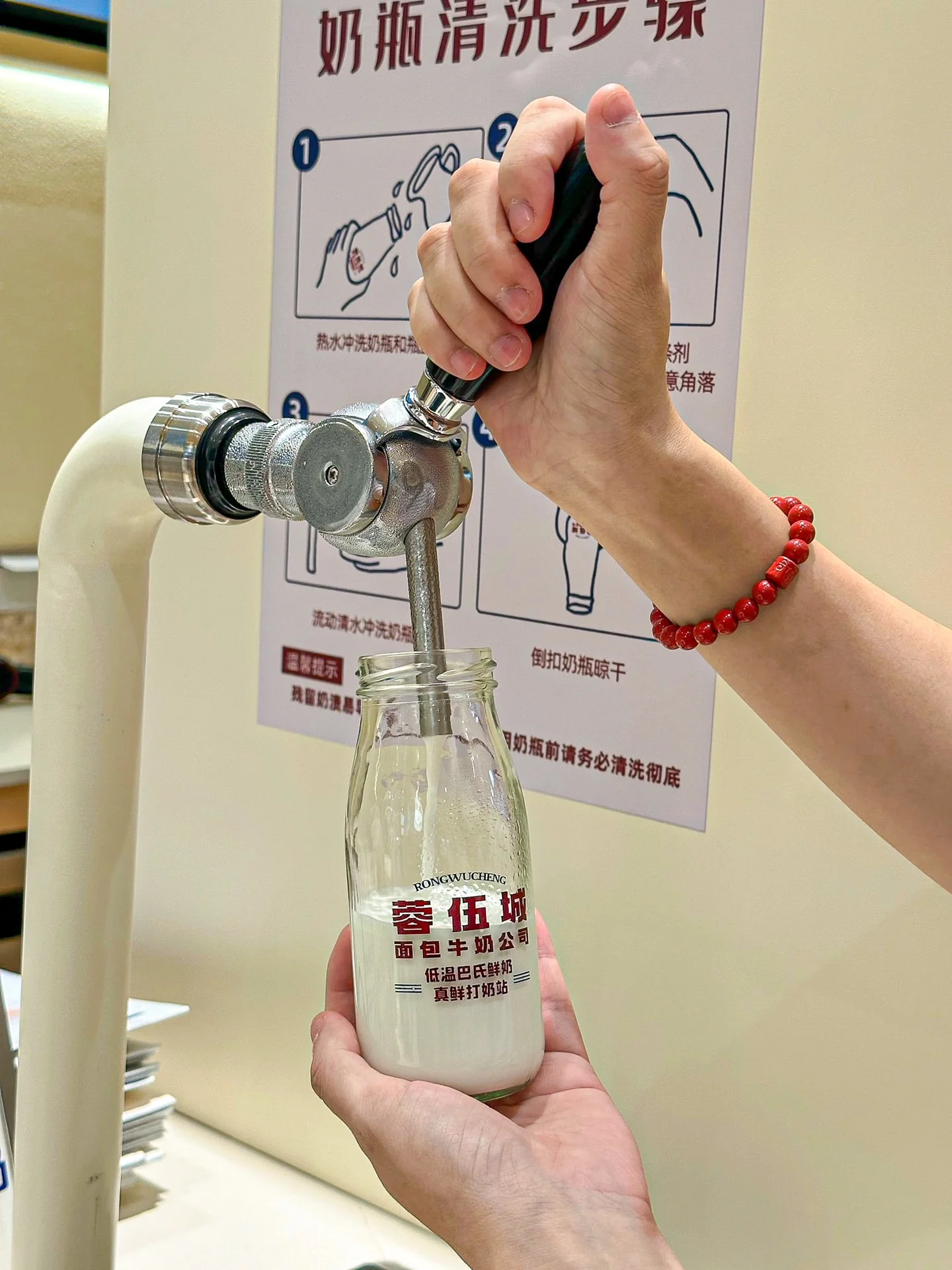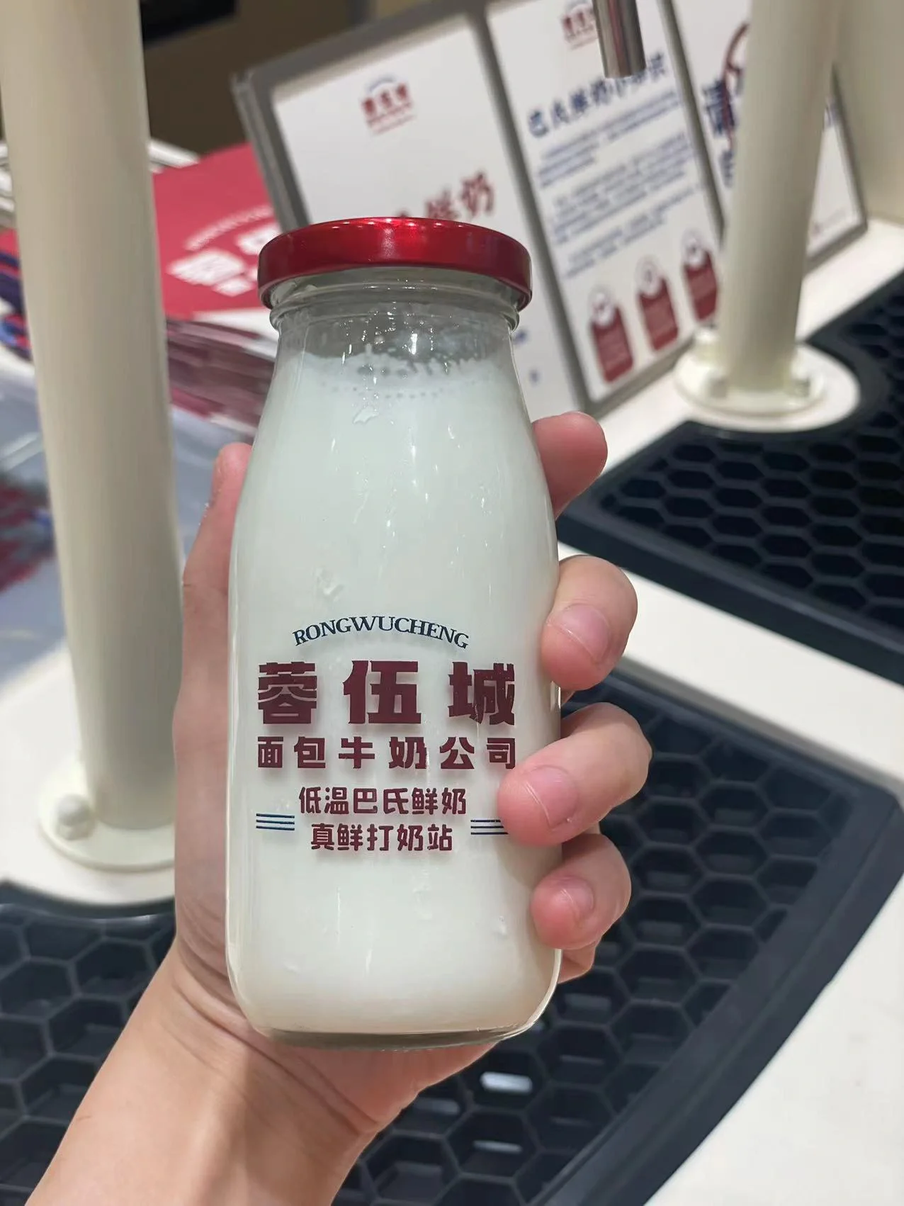 现打牛奶的快乐 这家位于嘉定的宝藏面包店完全可以解锁了我儿时的记忆,现烤的面包配上瓶装现打牛奶,老上海的味道! 进店后扑面而来的就是牛奶的香气和面包的甜味~ 豆浆配油条!面包就得配鲜奶! 这家蓉伍城面包牛奶公司的最大亮点就是: 现打牛奶+现烤面包 开放式的厨房处处都闻到奶香浓郁的烤面包的味道~~ 个人比较中意核桃马里奥和爆浆冰激凌可颂, 🔻核桃马里奥里面还有一层夹心,口味层次分明,而且真的很好吃!! 🔻爆浆冰激凌可颂的口感很奇特,一口咬下去眼前一亮,对!就是中华小当家那种感觉 最特别的属于【日期吐司】上面竟然印有当天的新鲜日期噢!! 所有面包松软,牛奶新鲜,感觉整体上值得二刷!! 近期新开业福利很多,赶紧去抢购哦 [星R]打卡即可🆓领取一袋吐司或现打牛奶的体验噢~
