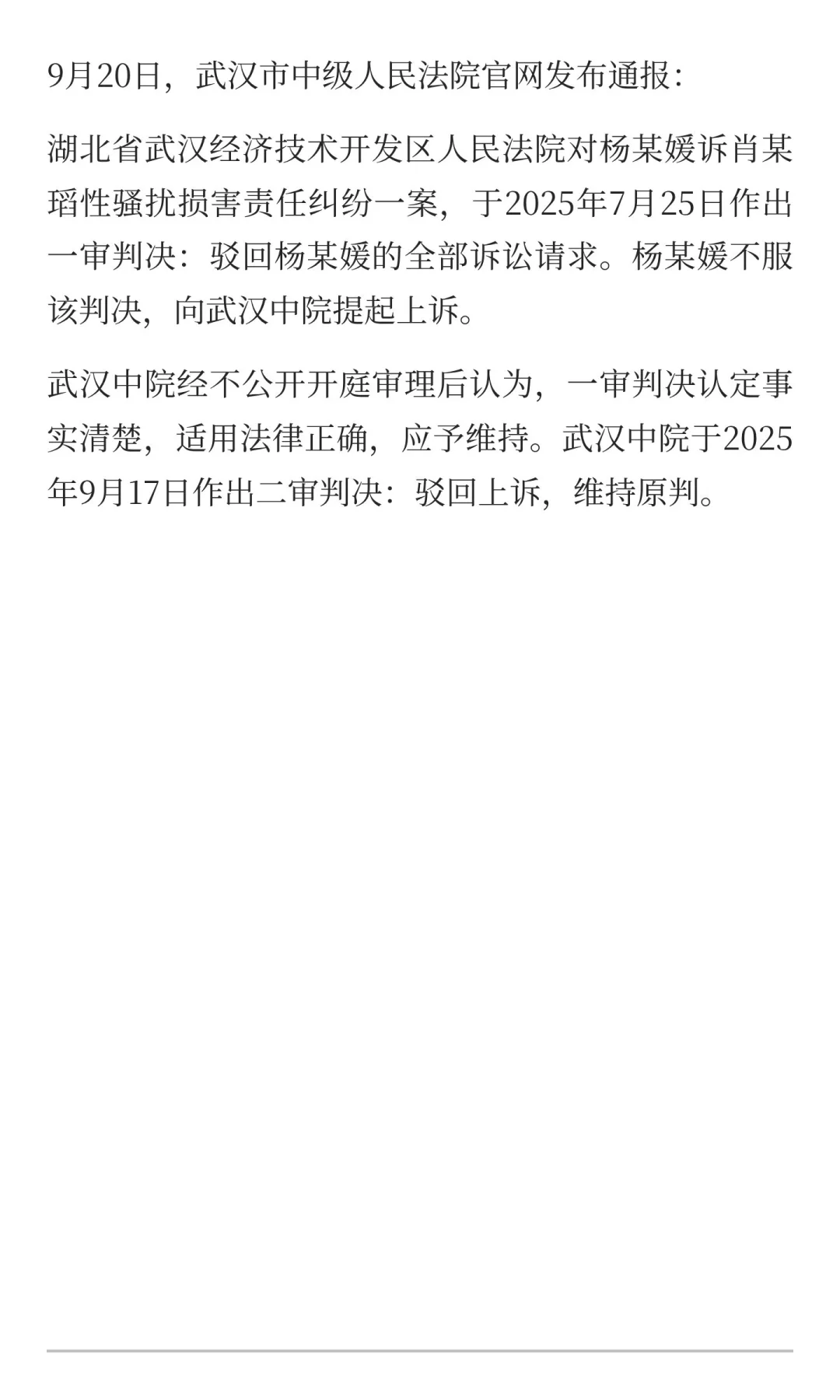 武汉中院:驳回杨某媛的全部诉讼请求