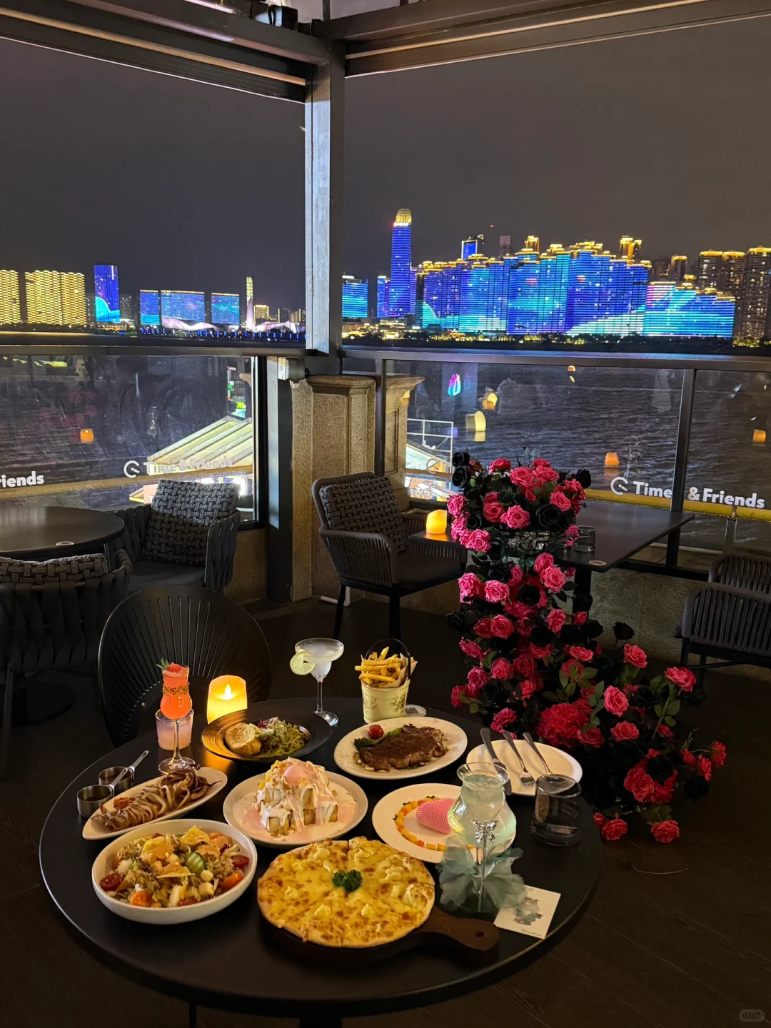坐拥整个湘江的江景拍照打卡地+1!被这家花间客江景餐厅惊艳到了,好出片!!对面高楼大厦的霓虹灯闪烁✨灯光和氛围感都恰到好处!! 而且他们家菜品好吃,酒也不贵,来这里约会&过生日真的很浪漫~周末人多,要去的记得提前预约比较好!!