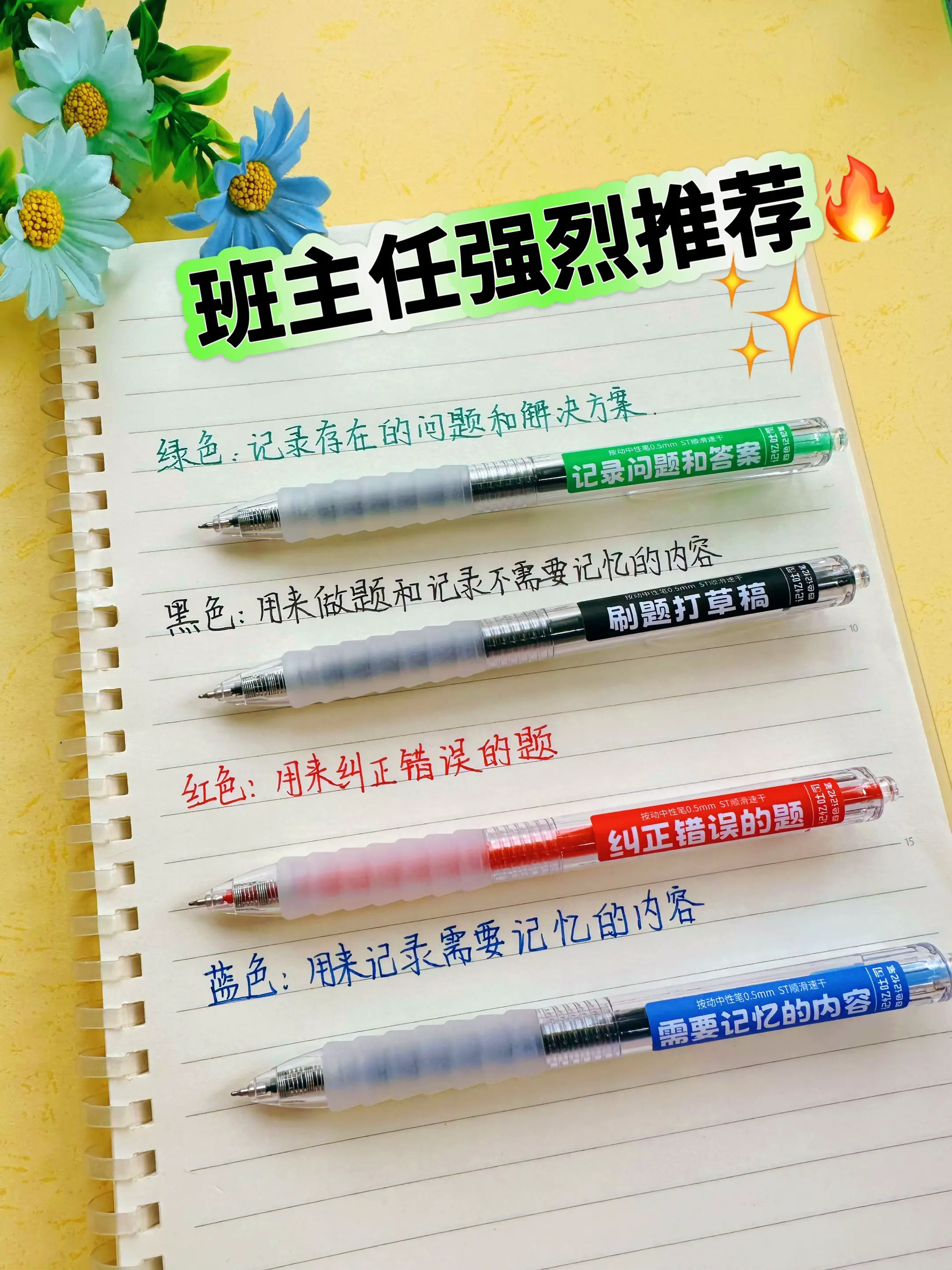 班主任推荐的四色记忆笔⚠️。一定要学会记笔记!根据心理学研究表明不同...