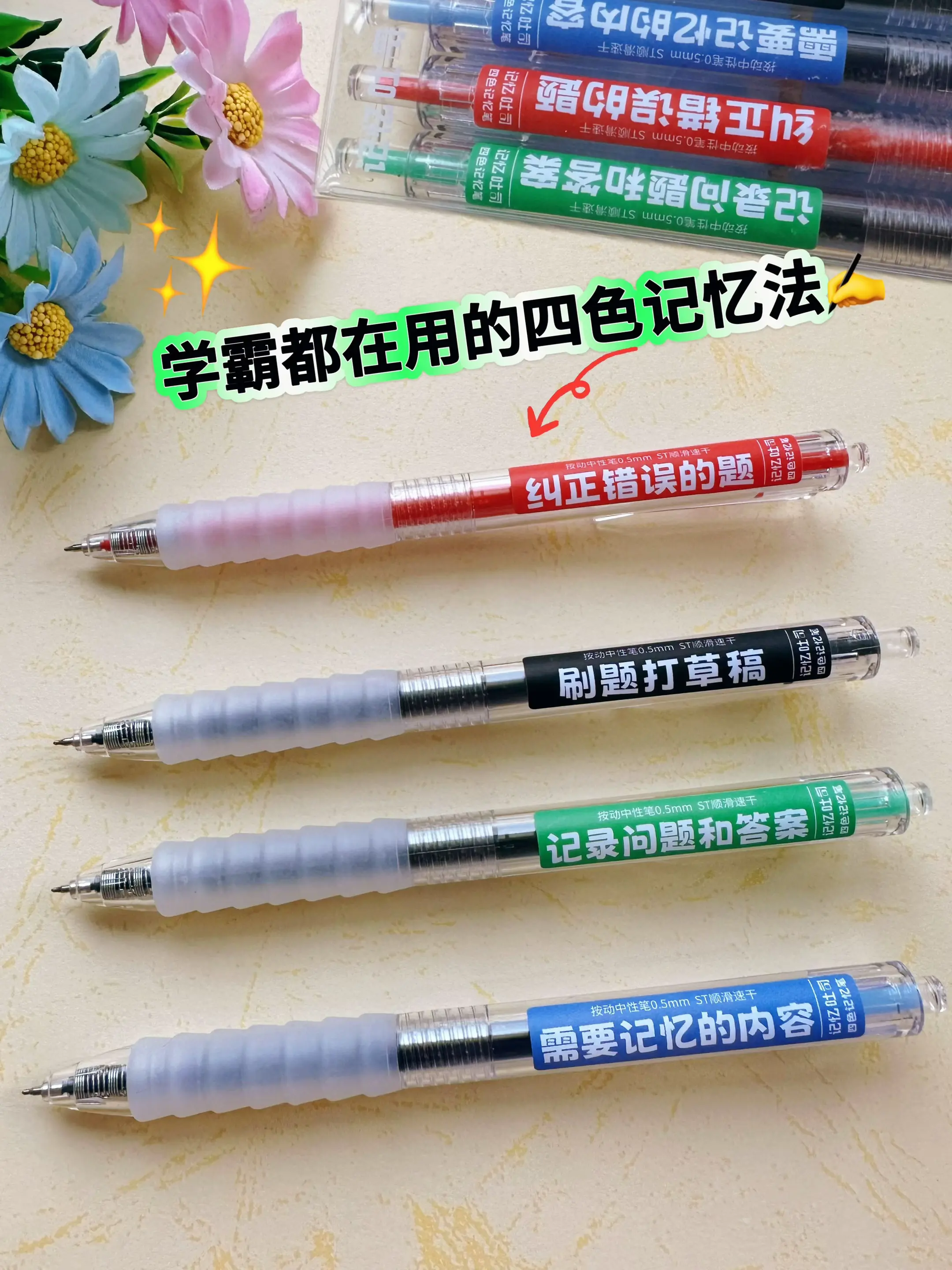 班主任推荐的四色记忆笔⚠️。新学期 一定要学会记笔记!根据心理学研究表明不同颜色对应了孩子大脑不同区域的记忆特征,红、绿、黑、蓝四种颜色可以激活右脑活性,帮助孩子快速区分重难点,提高记忆效率‼️四色记忆笔学习用品学生党好物推荐