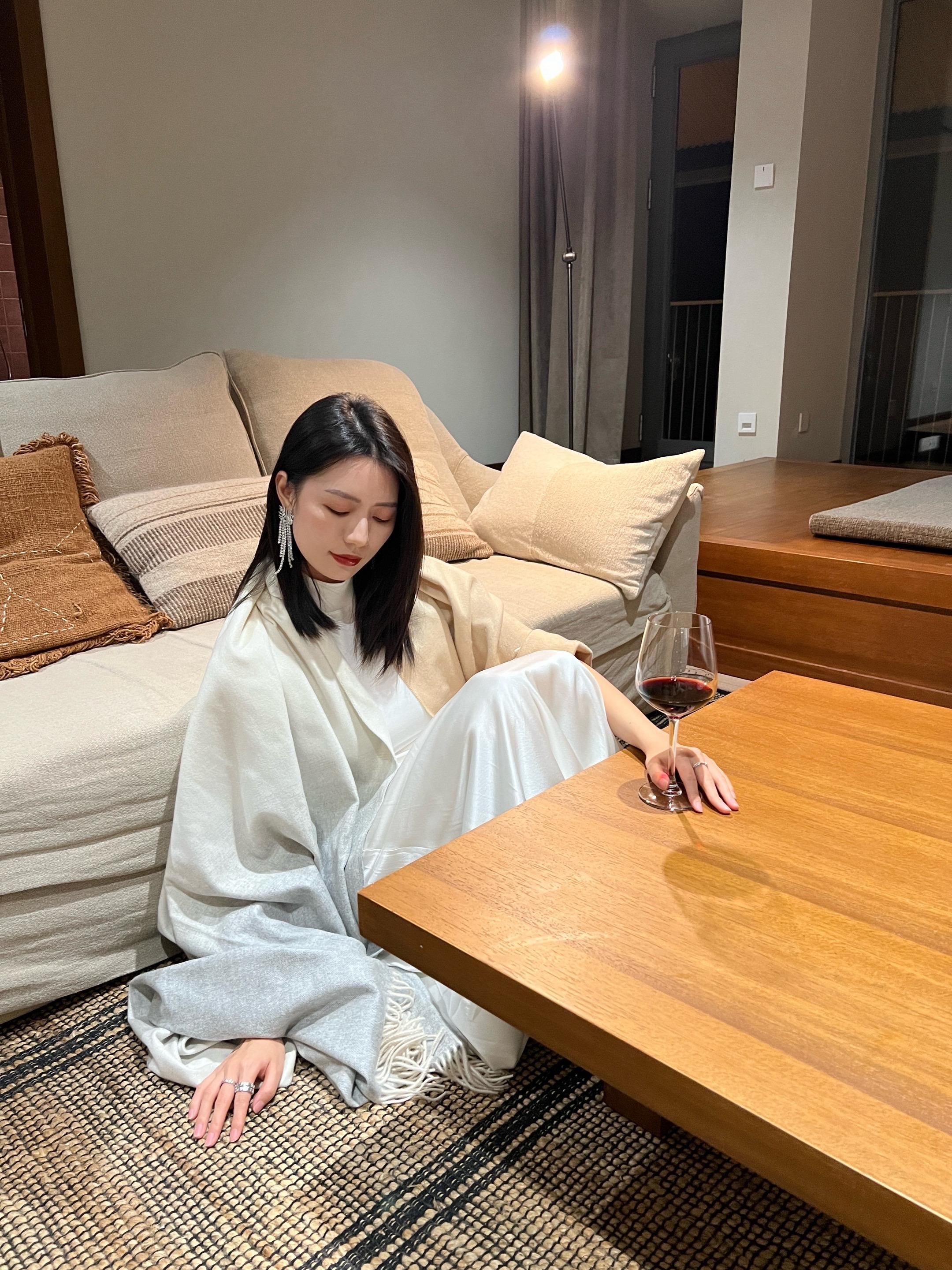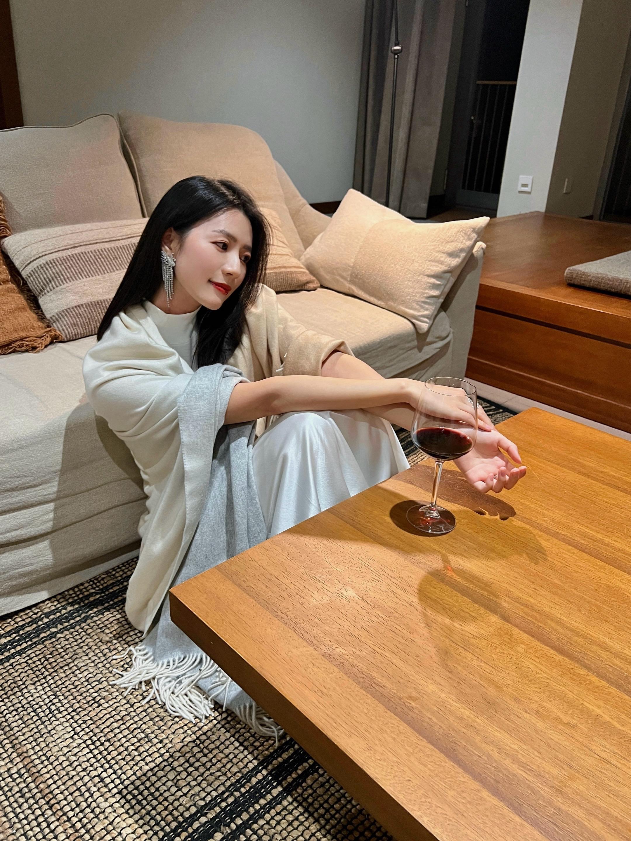 黑发配红唇。酒量渐长