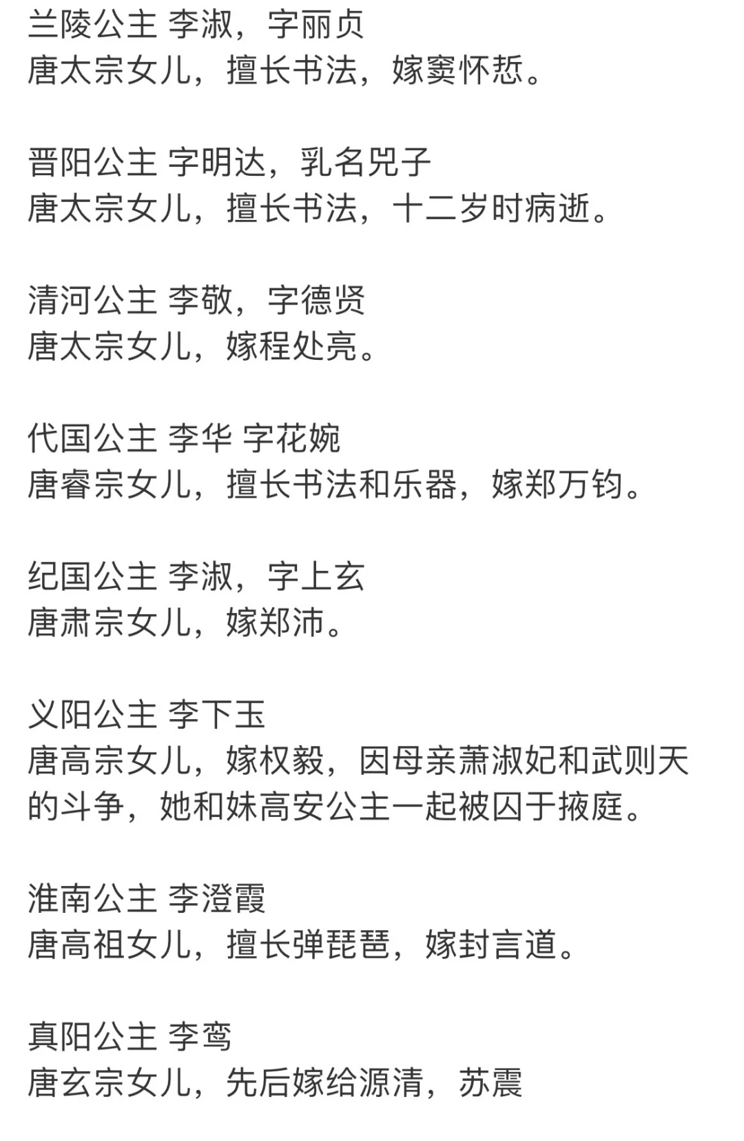 唐朝公主出名的不少,但如太平公主,安乐公主,高阳公主等,都未曾留下姓名,只留下一个“李氏”的记载。整理了一些留下了名字的唐朝公主,仅作参考。