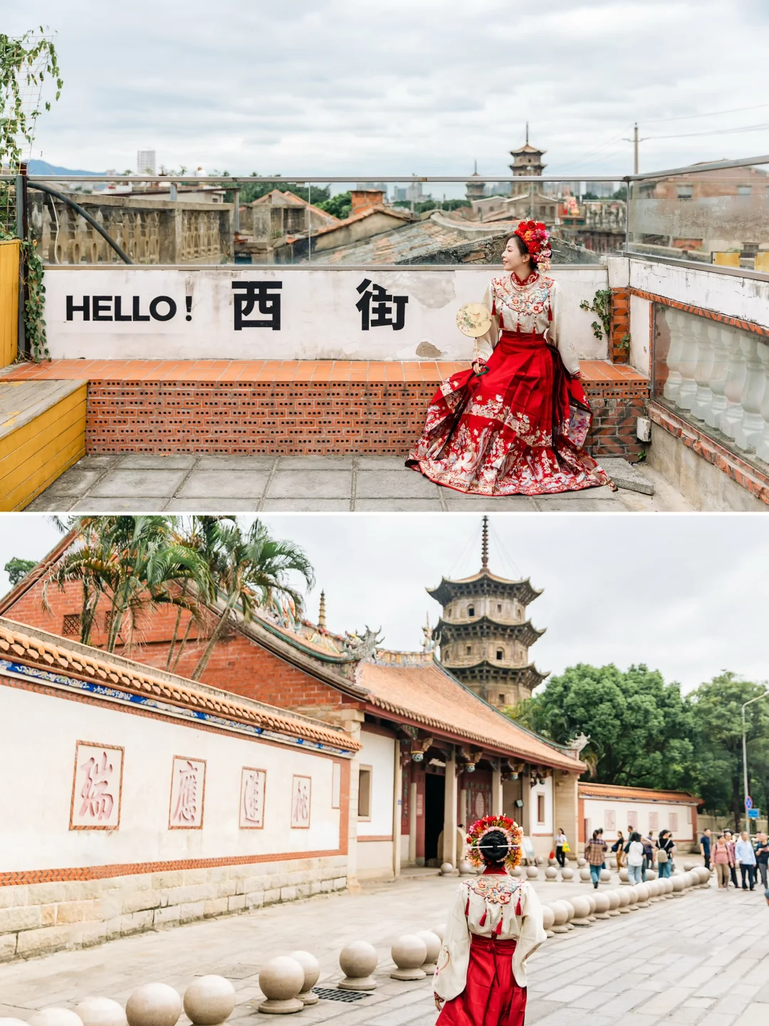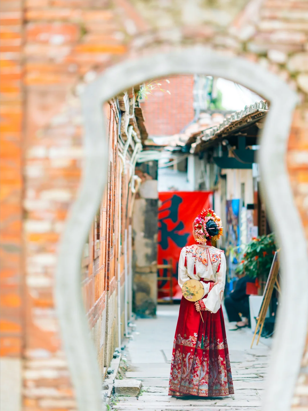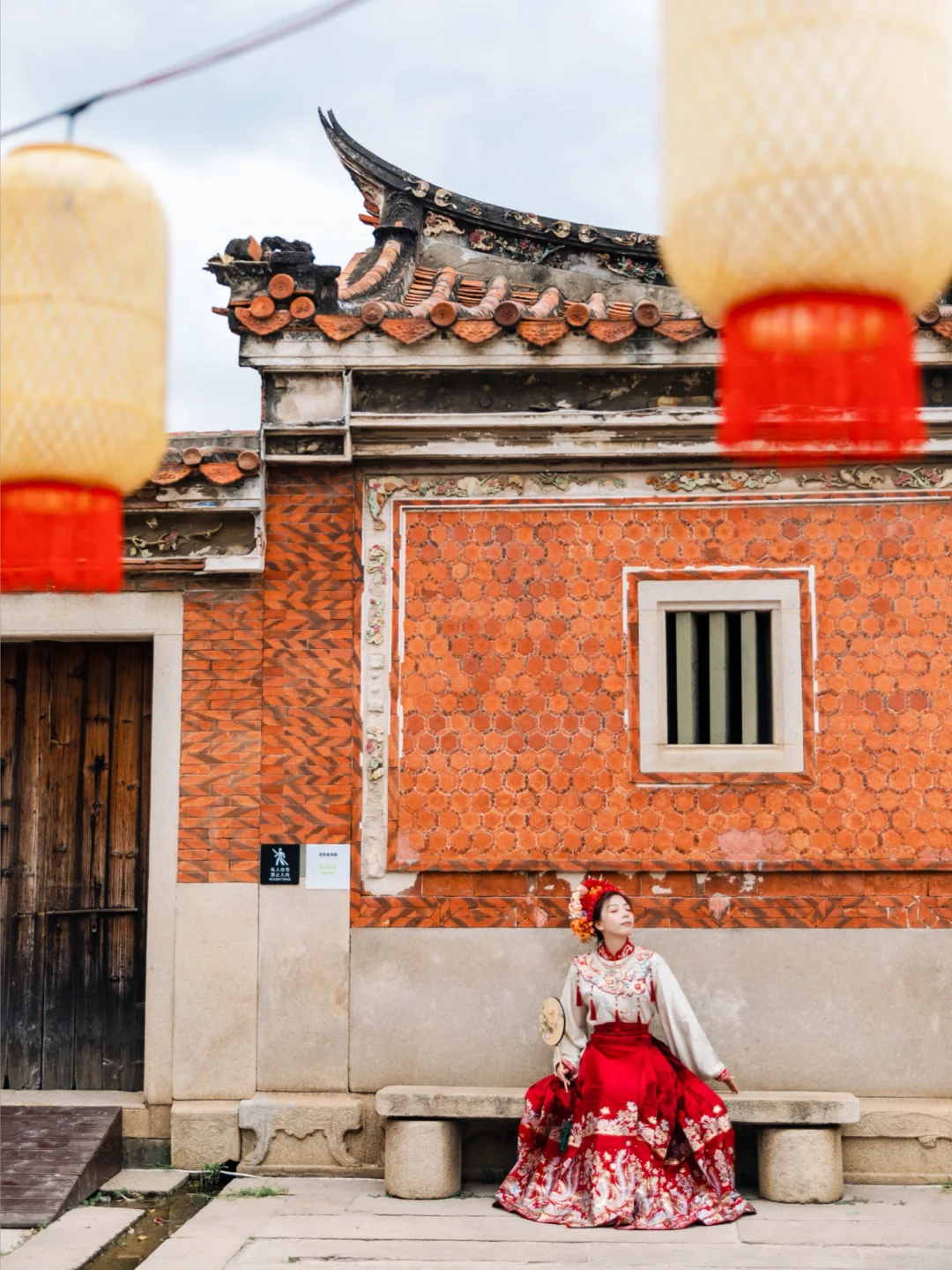 红砖古厝非常出片,也很适合拍簪花照片📷
