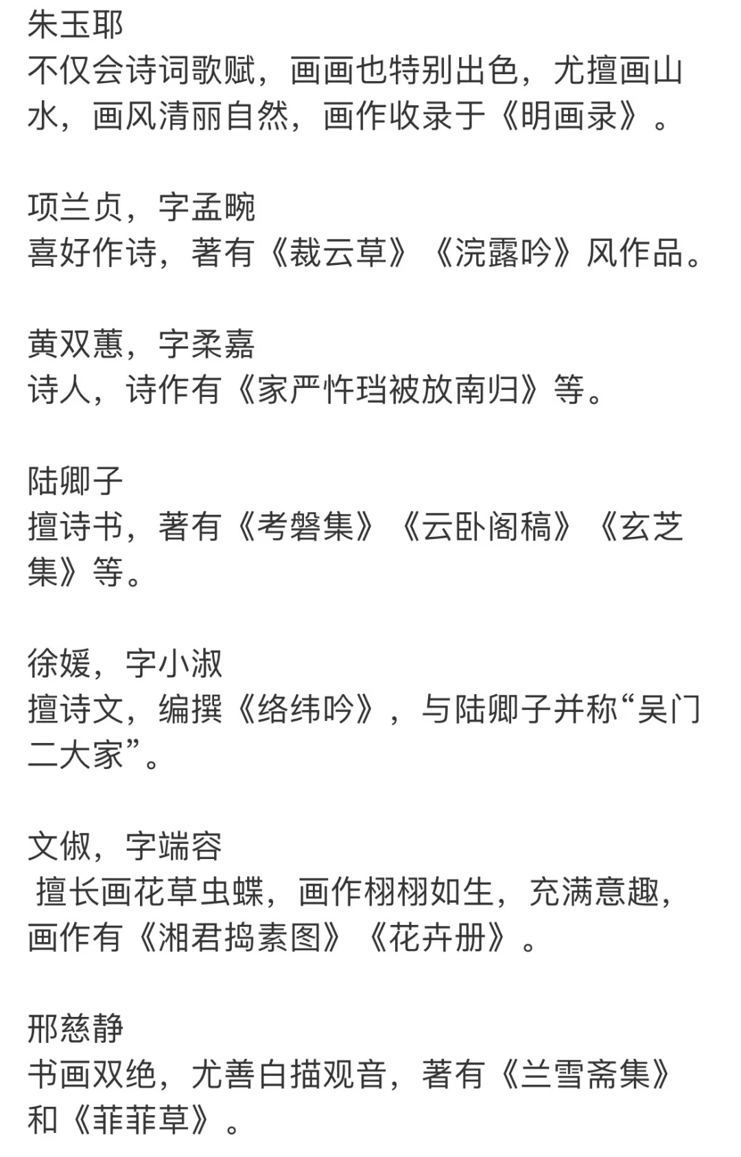 不仅自己擅长写诗,诗作颇多,而且还编撰了《名媛诗纬》,收录了各朝女子的诗词作品。