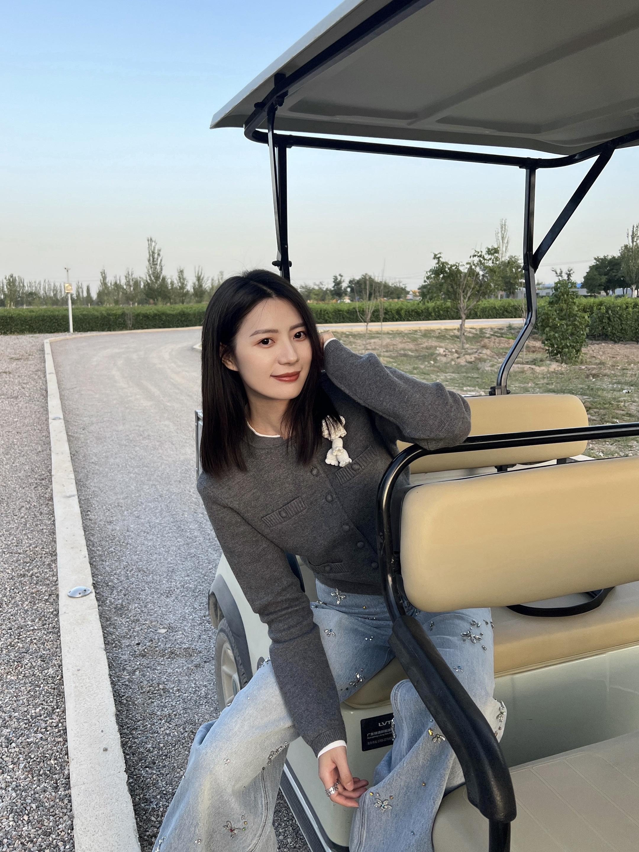 今天陪老公去打高尔夫,穿这身绿裙子还真有点“装”~本来以为能挥杆像模像样,结果
