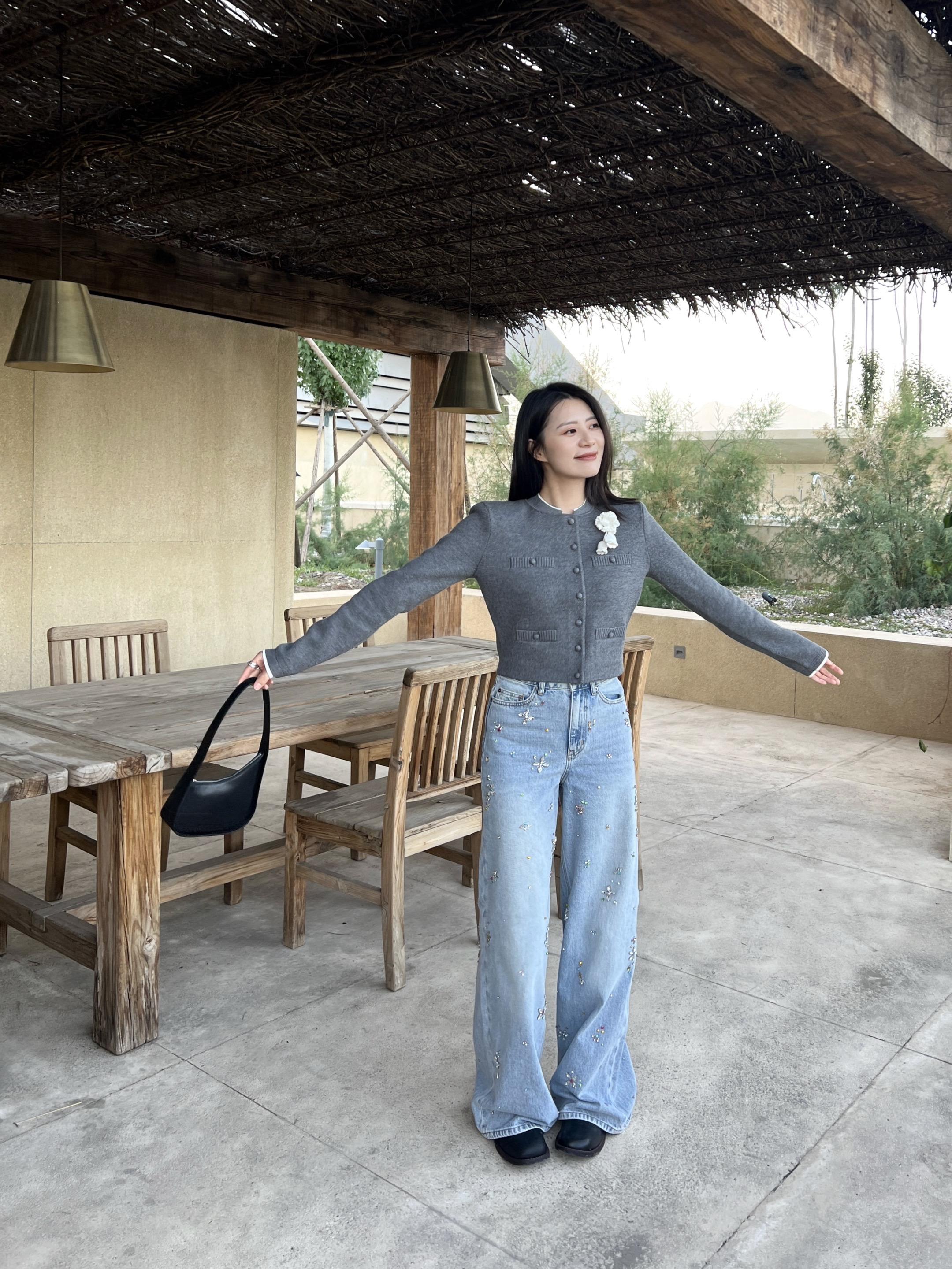 《溪畔晴光》素衫裁取晴光软,牛仔轻笼玉色弯。石岸风拈芦穗雪,回身笑落一溪