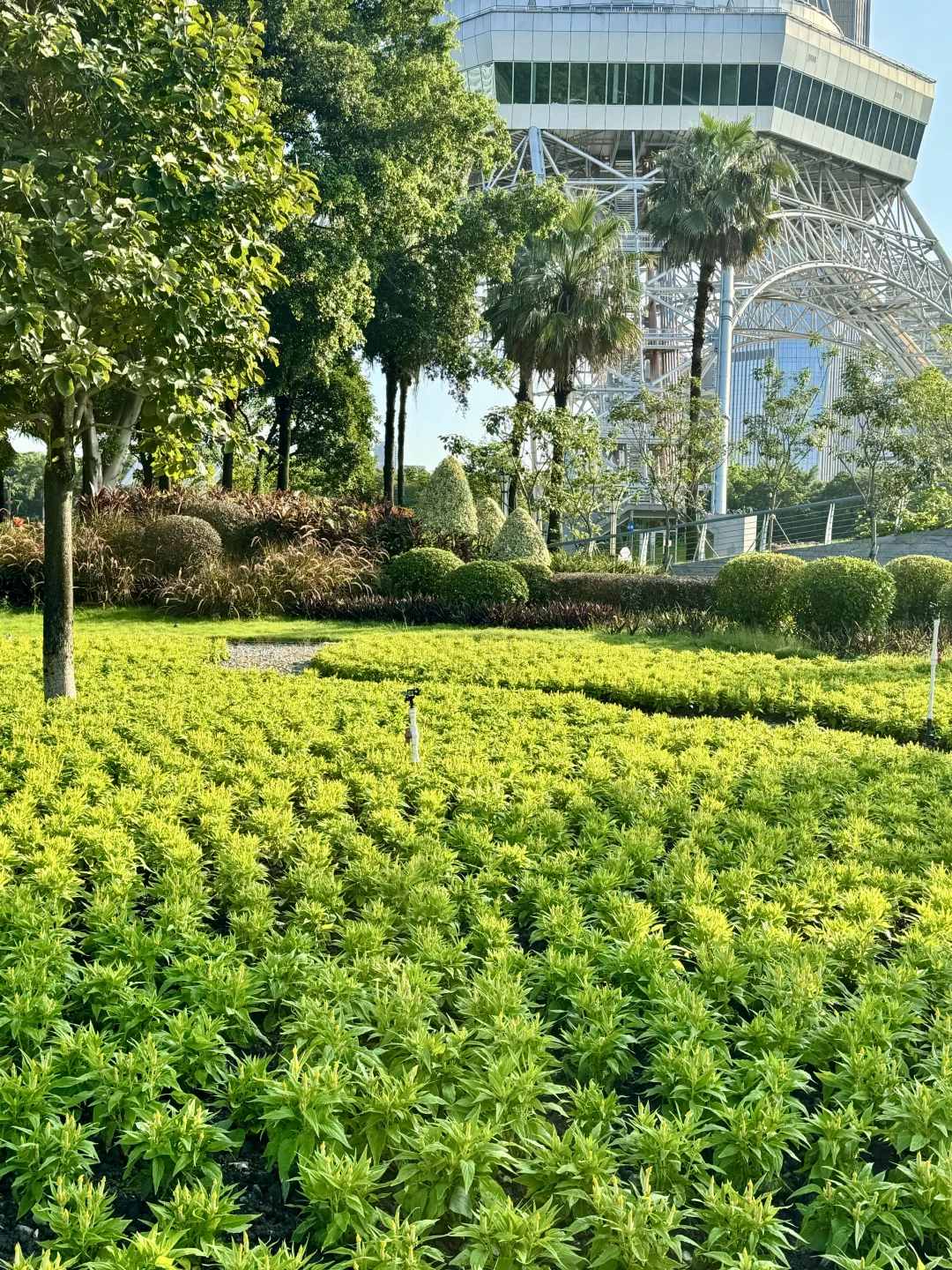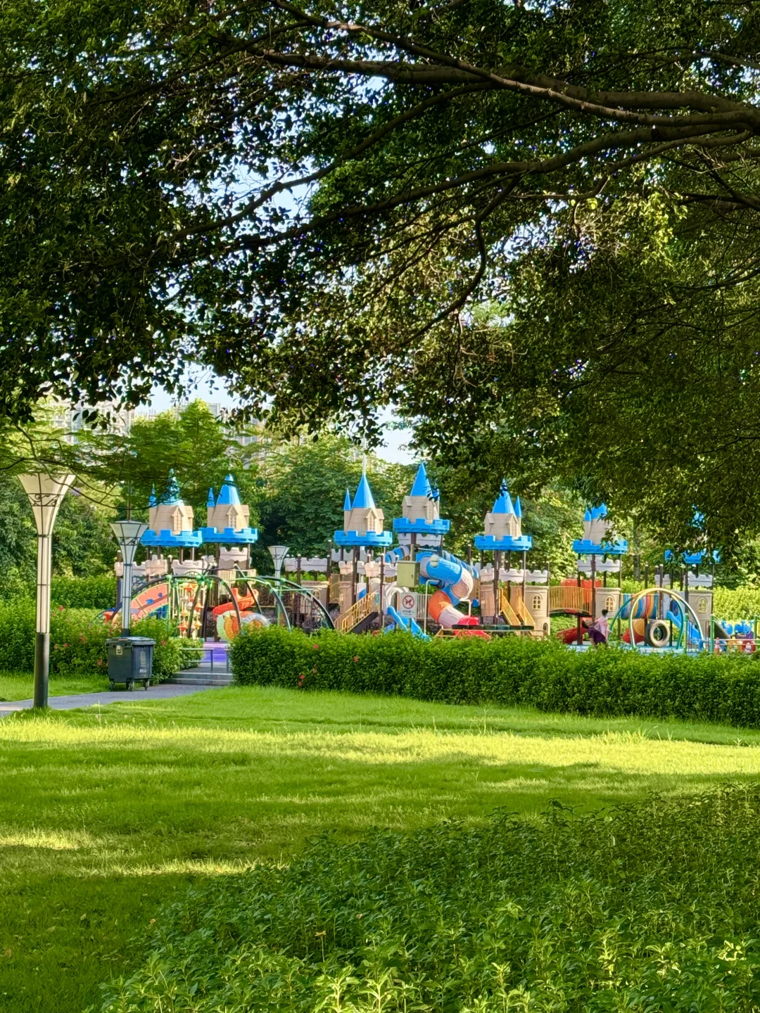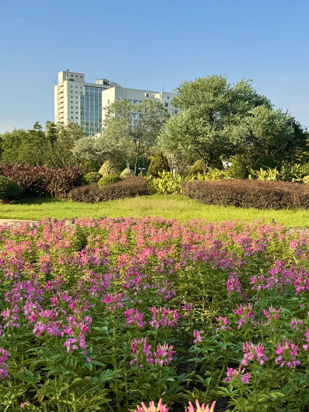 台风前的天空格外的蓝 蓝的没有一片白云☁️ 刚种上的小花可要撑住[斜眼R] 中秋国庆再来赏花 这个公园真是美超多大草坪,绿树成荫 来露营野餐真惬意 还有一个城堡🏰儿童玩游设施 📍文华公园
