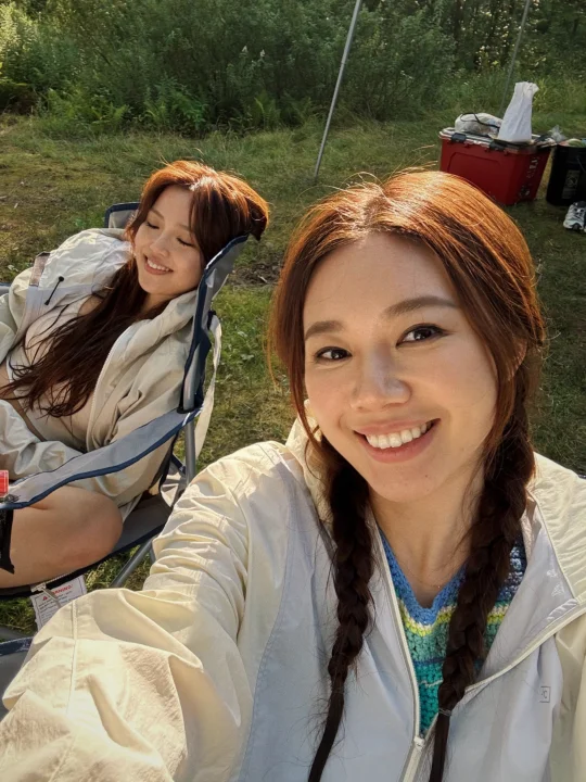 阳光下的她像是从画里走出来的人——长发顺着肩线垂成温柔的弧度,蕾丝抹胸衬得肩颈线