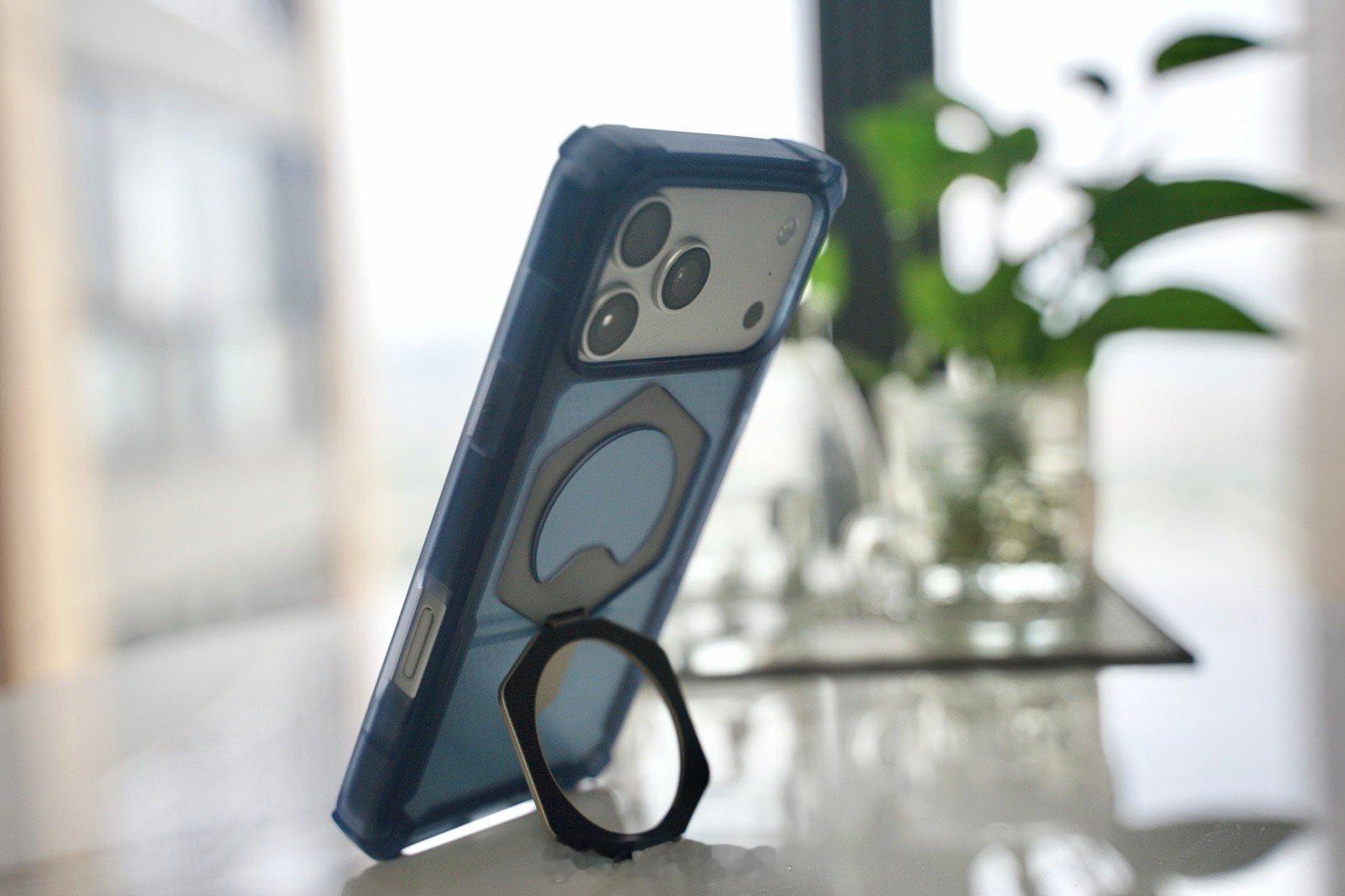 这一代 UAG 在手机壳也加上了磁吸支架,不仅支持磁吸,还能随时随地立在桌面解放双手(在外面吃饭的时候巨好用[干饭人][干饭人][干饭人])