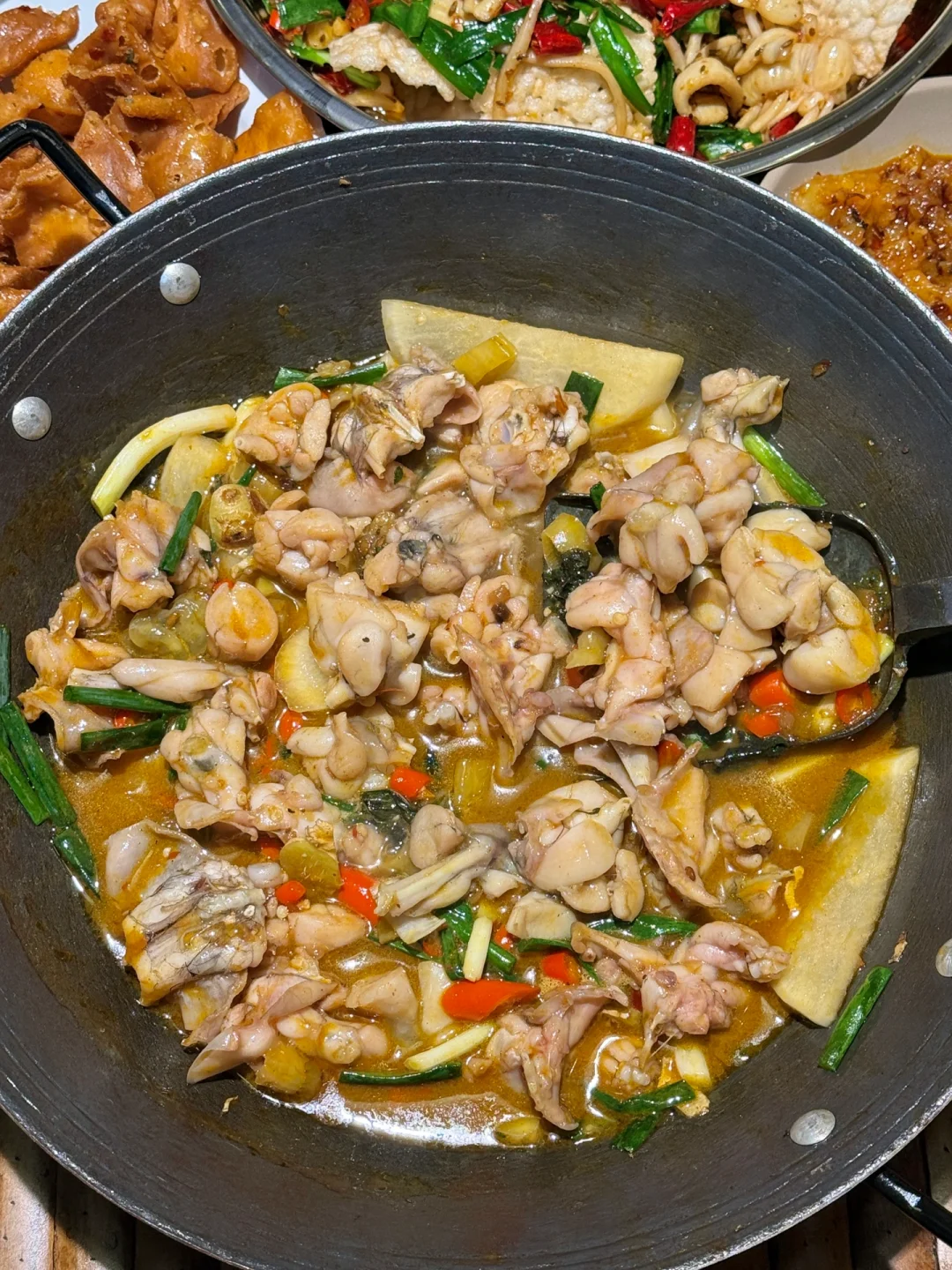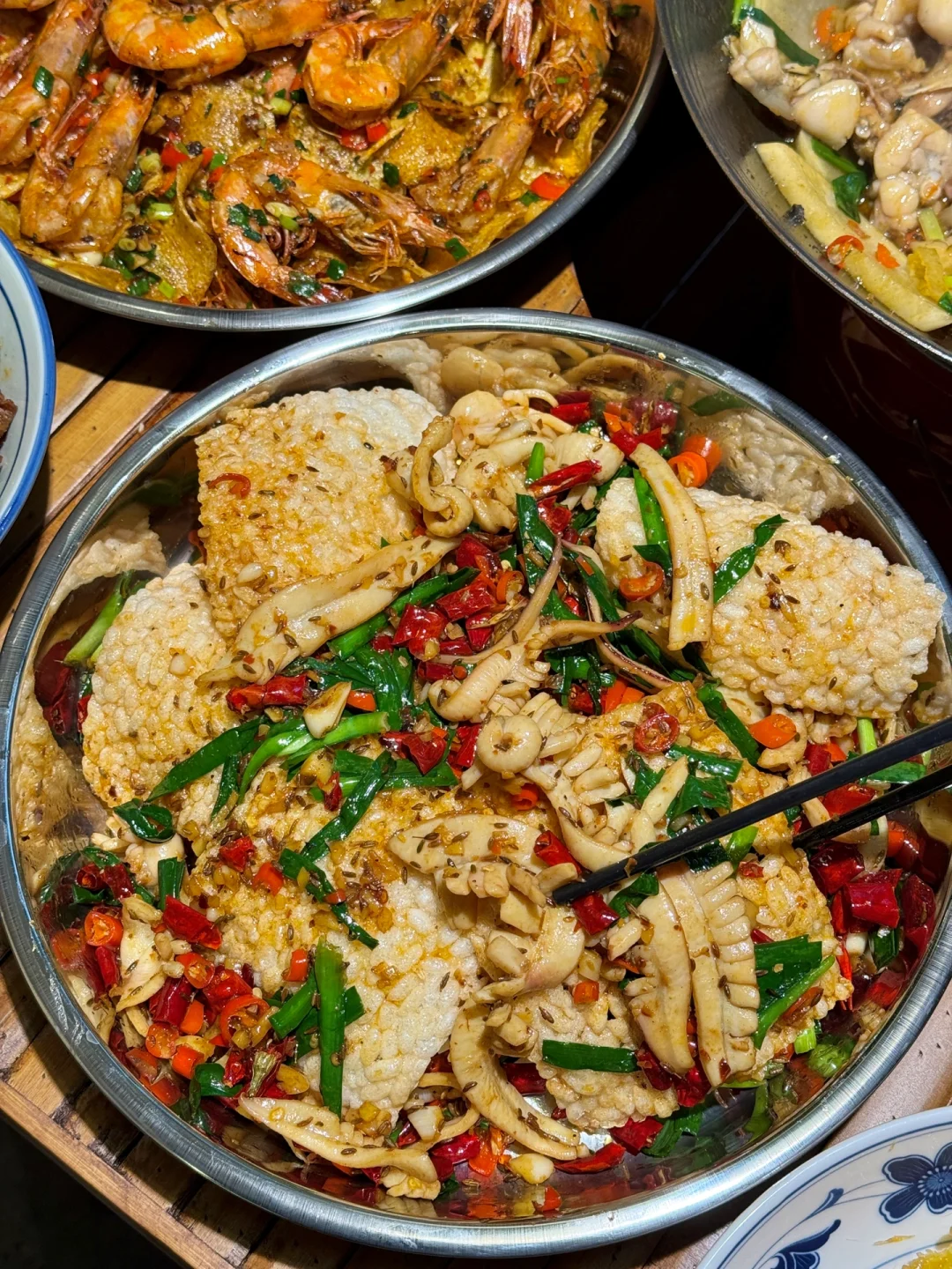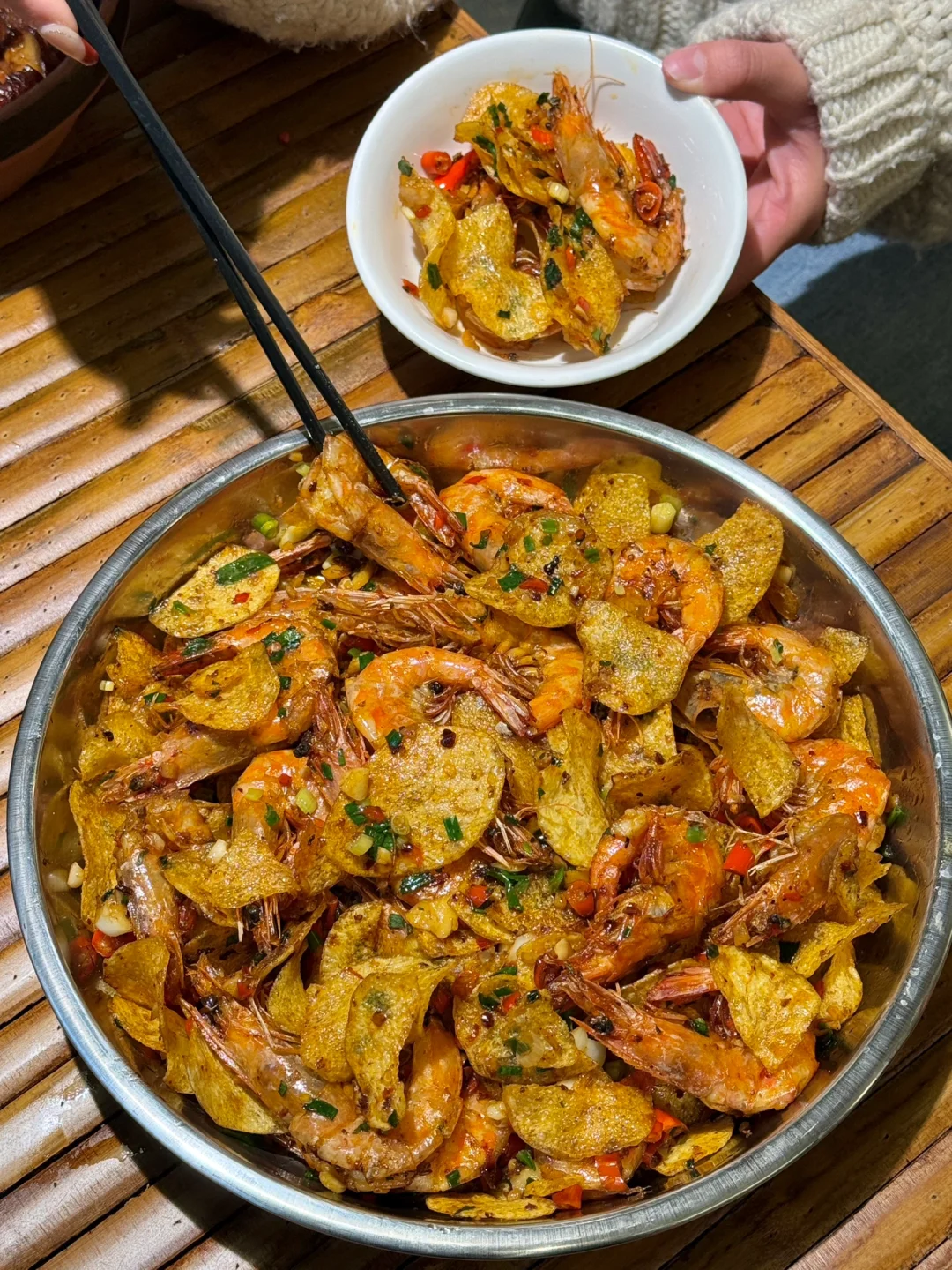 进门就知道没来错!!坐满了街坊邻居和老口子… 店名叫:俏八嗲!菜品份量扎实还平价好吃… 求求了家人们别只知道去那些网红店排队了!甚至还买黄牛票…这里不香吗?? 我们人均40左右满满一桌都没踩雷!每道菜品都好爱! 推荐✔️妈妈炒牛肉巨下饭!是小时候的味道~ 薯片干锅虾是谁发明的啊!!又香又脆,广东胃都能接受的那种辣度,好好吃! 条肉、牛蛙、锅巴鱿鱼真的绝了!别的地方吃不到这么正宗的老长沙味道😭😭好好吃!!