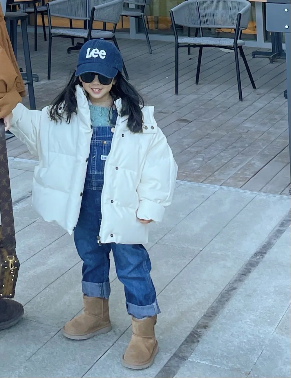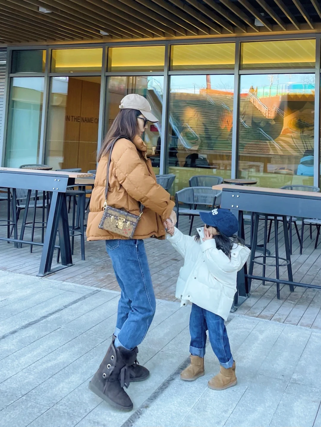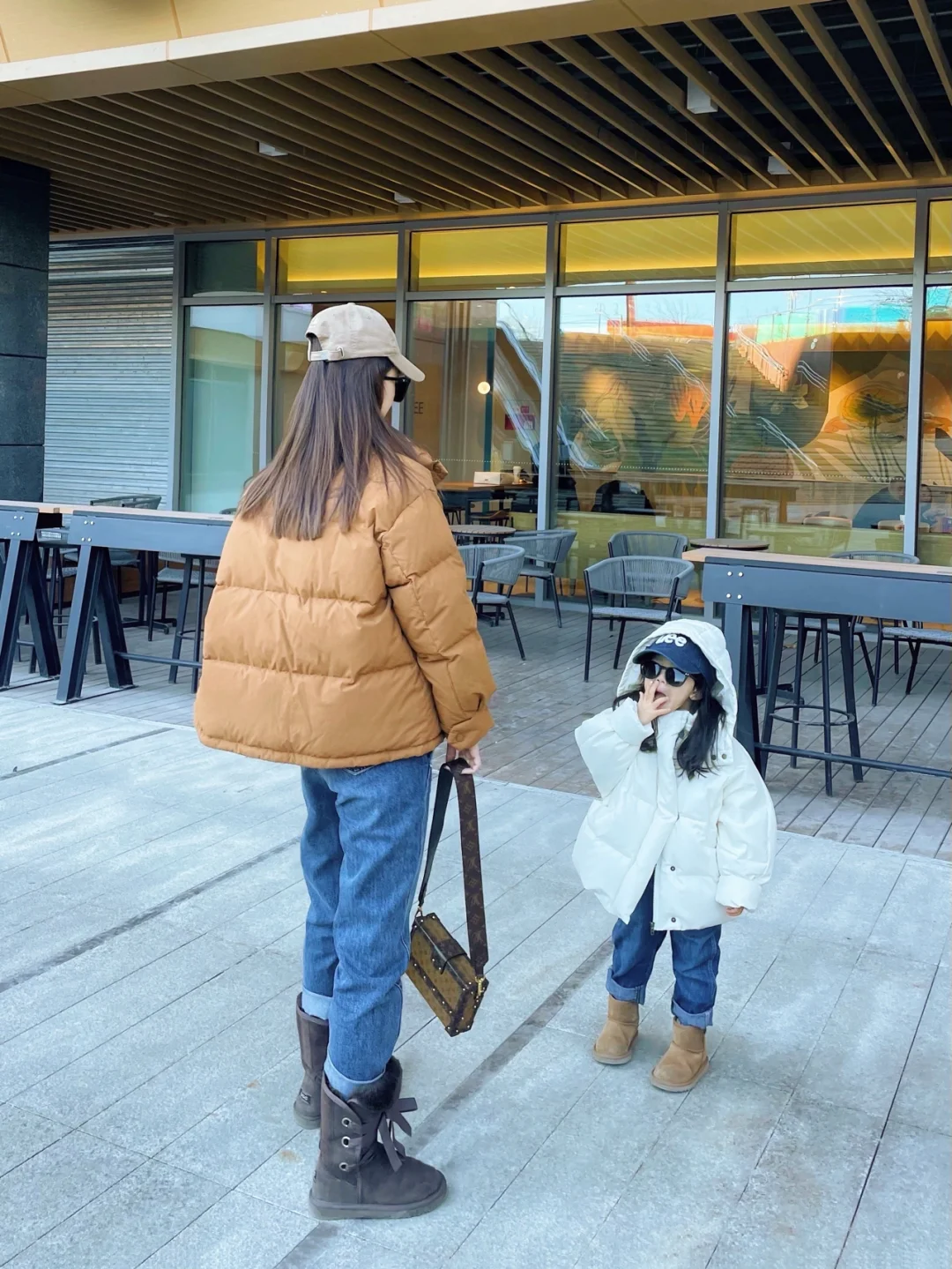 面包服配牛仔 出发京郊农家院✌🏻️ OOTD 妈妈羽绒服:勾划 牛仔裤:ZNE 牛仔外套:fram 雪地靴:UGG(老款) 宝宝羽绒服:VandV 背带裤:LEE
