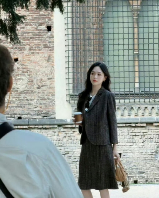 唐嫣时装周造型路透 裤装这套很像我奶的搭配,说实话显老气,裙装的这套很适合她,知