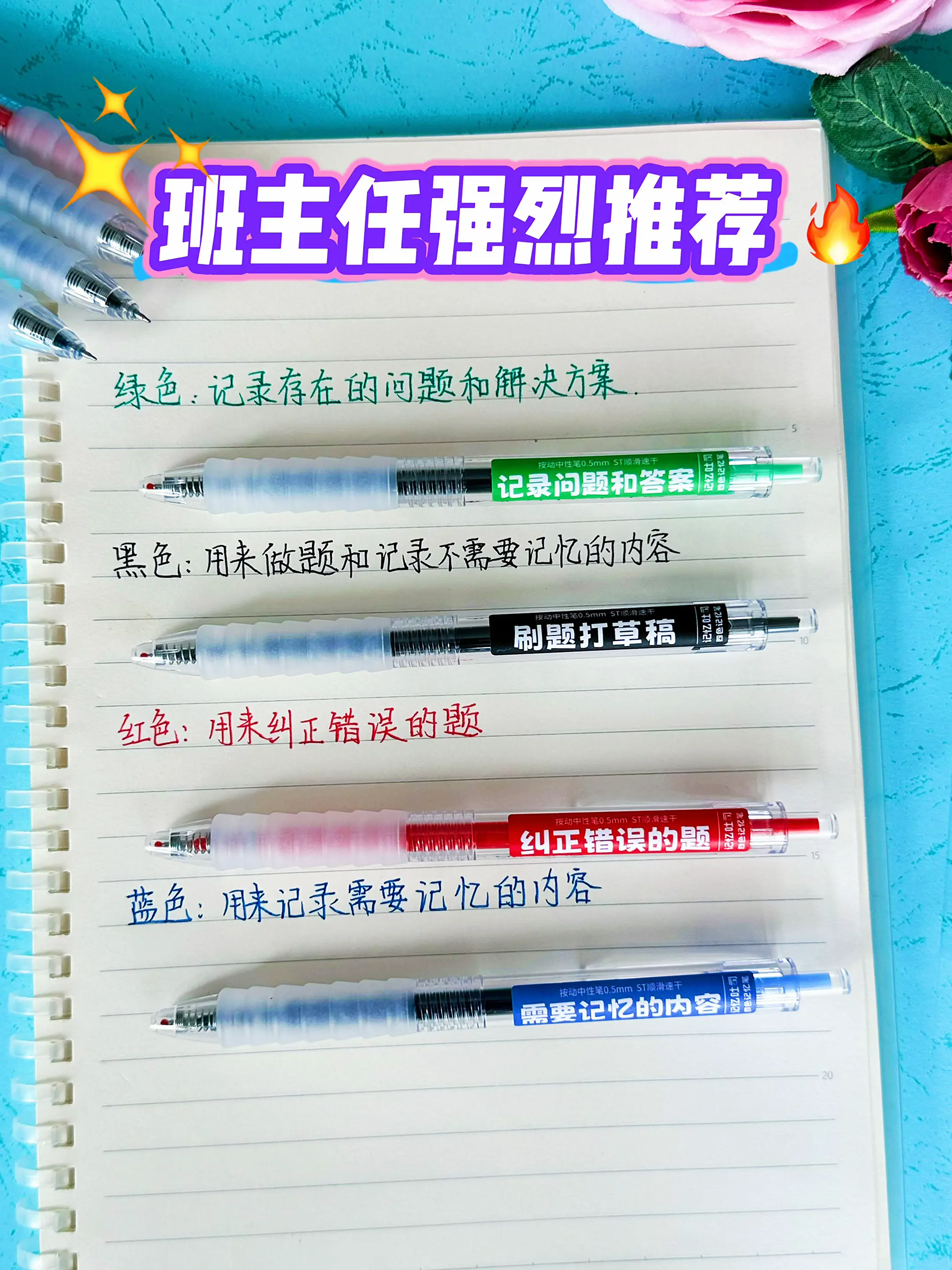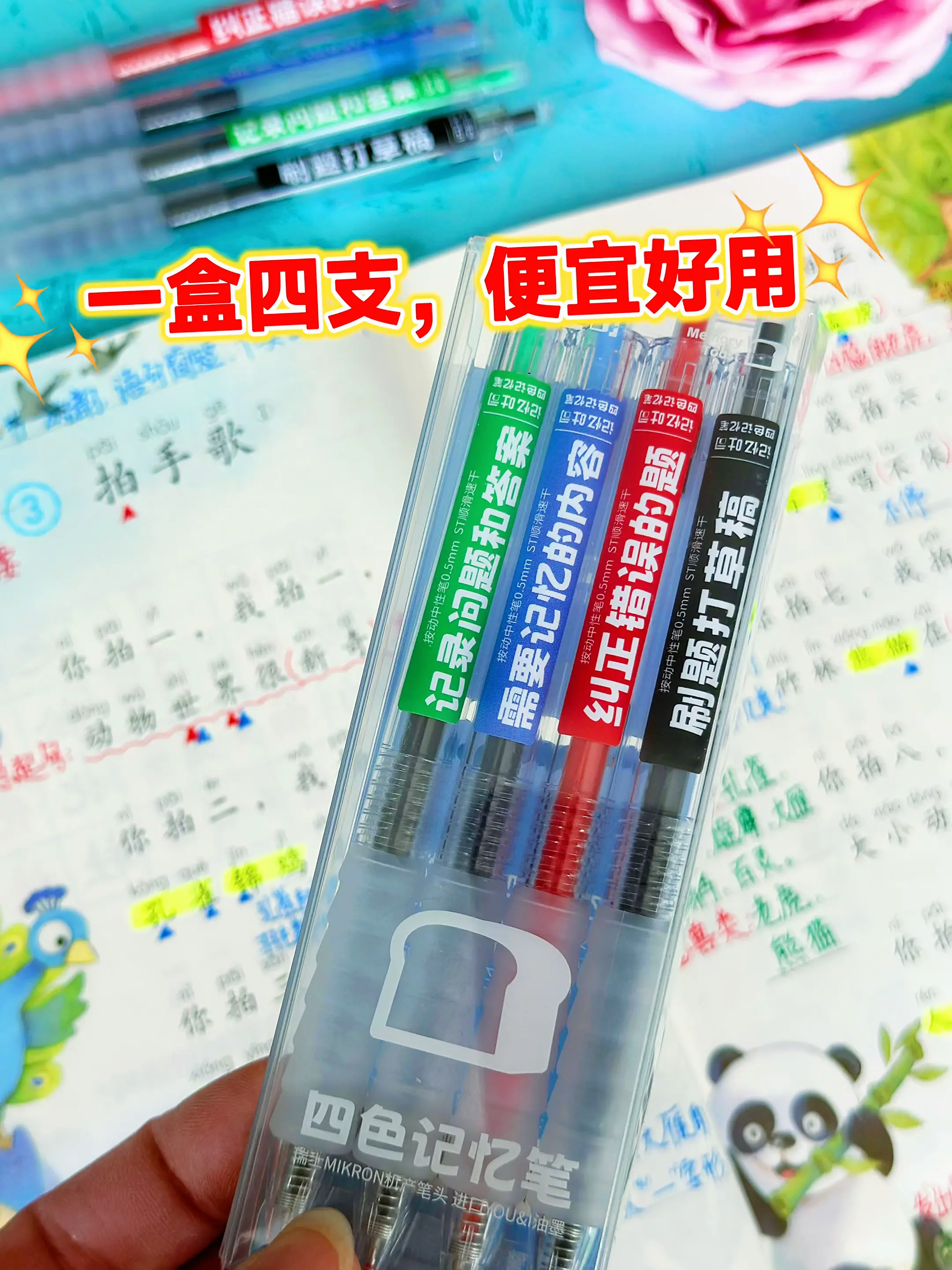 班主任推荐的四色记忆笔🔥。强烈推荐 一定要学会记笔记!根据心理学研究表明,不同颜色对应了孩子大脑不同区域的记忆特征,红,黒、蓝、绿这四种颜色可以激活右脑灵活性,帮助孩子快速区分重难点,提高记忆效率!